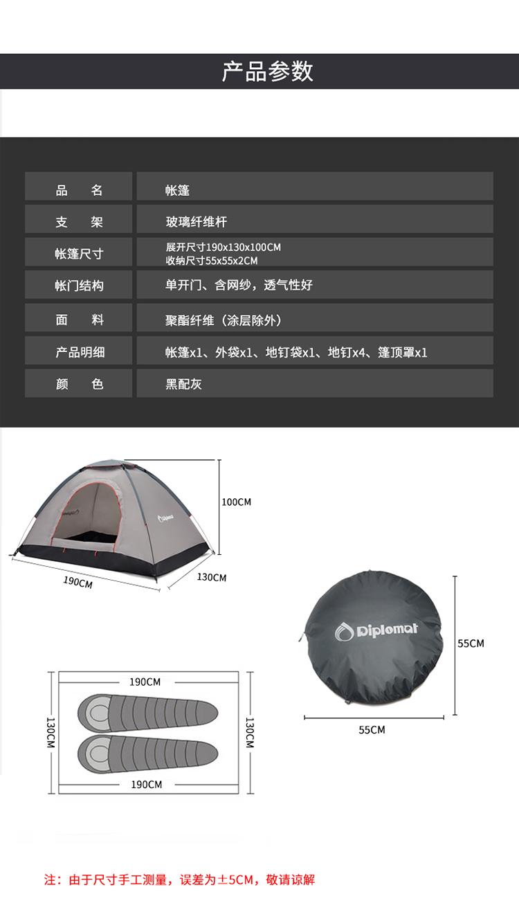 商品名称:Diplomat/外交官帐篷-黑配灰小号DFJ-105