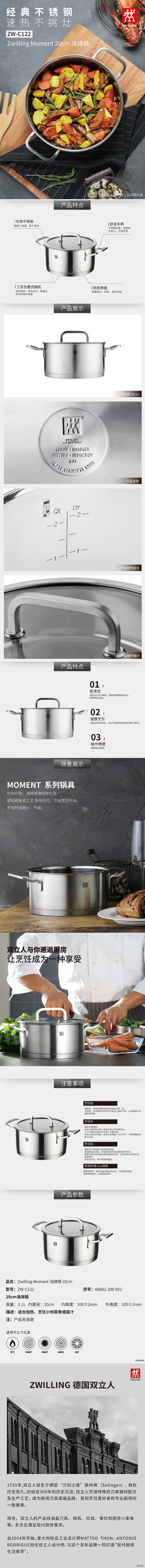商品名称:【德邦配送】ZWILLING/双立人ZwillingMoment系列20cm浅烧锅ZW-C122