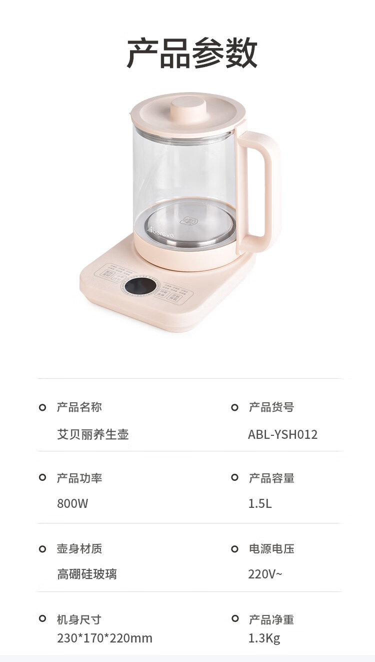 商品名称:ABEREVE/艾贝丽1.5升多功能养生壶ABL-YSH012