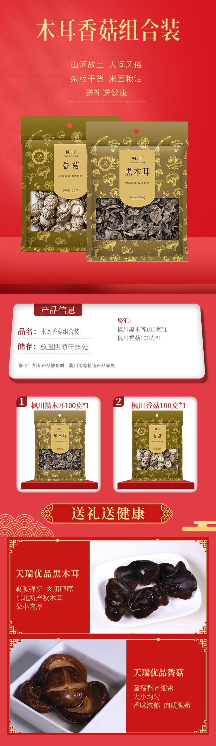 产品规格:黑木耳100g*2袋+香菇100g*2袋