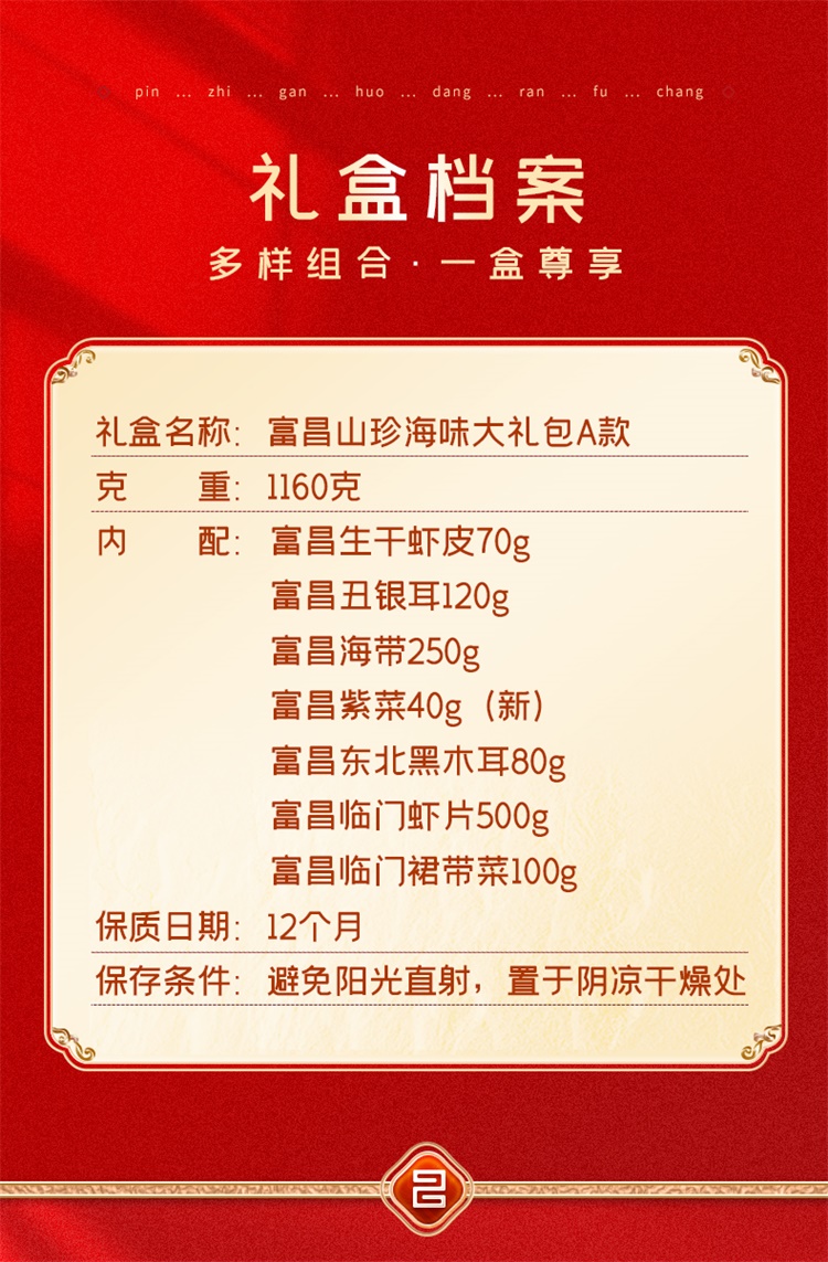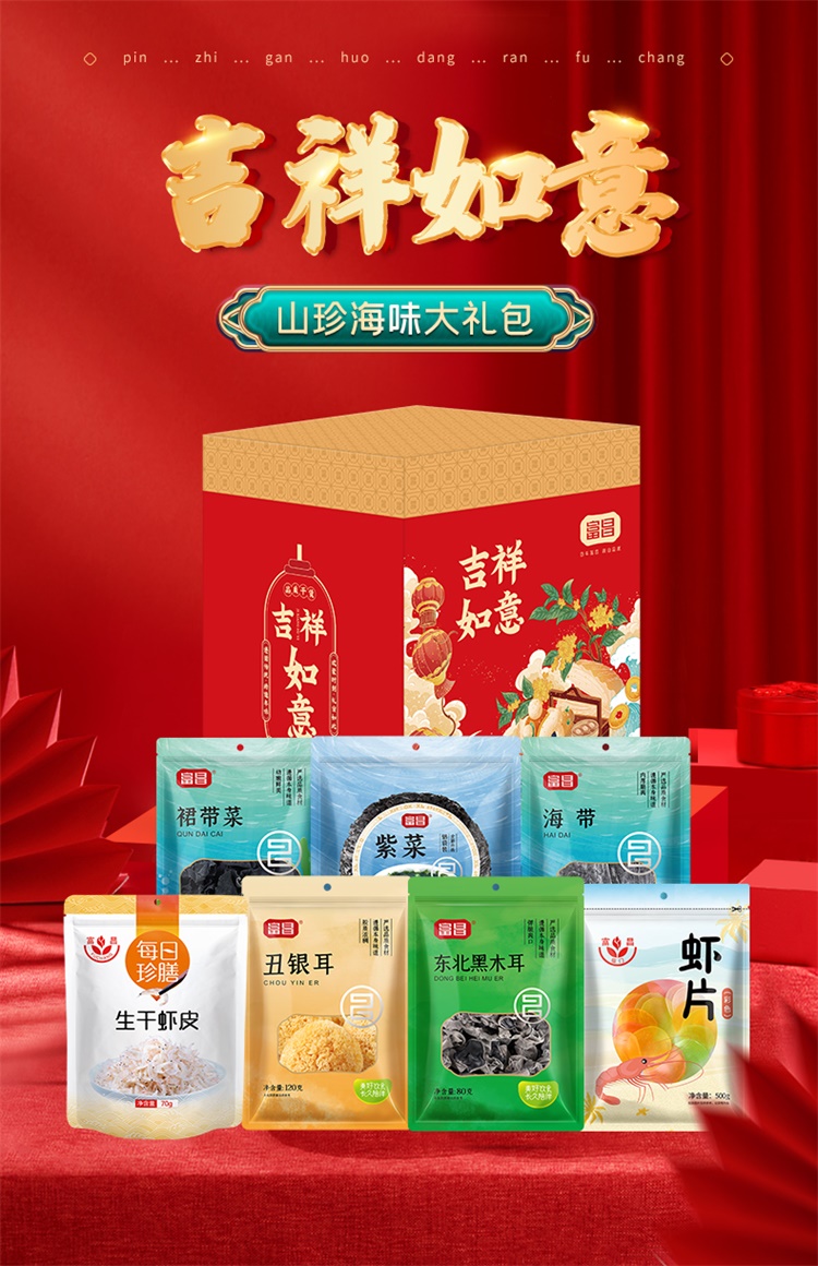 商品名称:富昌吉祥如意山珍海味干货大礼包A款1160g