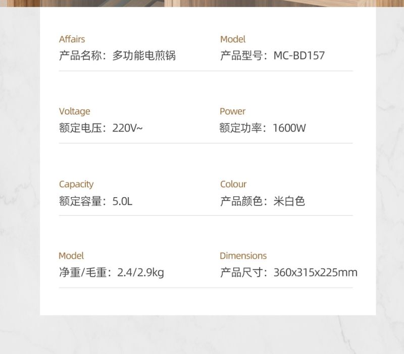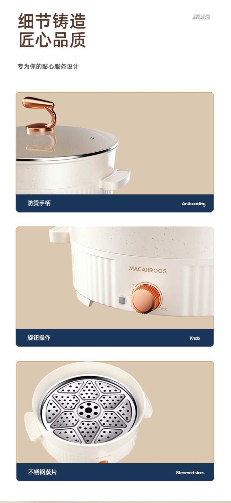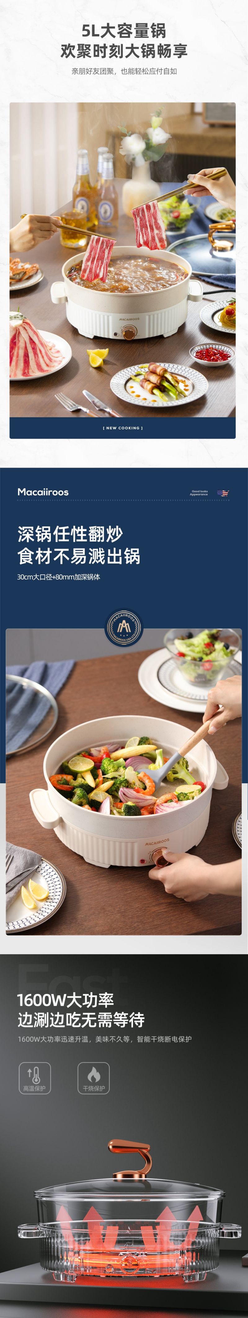 商品名称:MACAIIROOS/迈卡罗5升多功能电煎锅-米白色MC-BD157