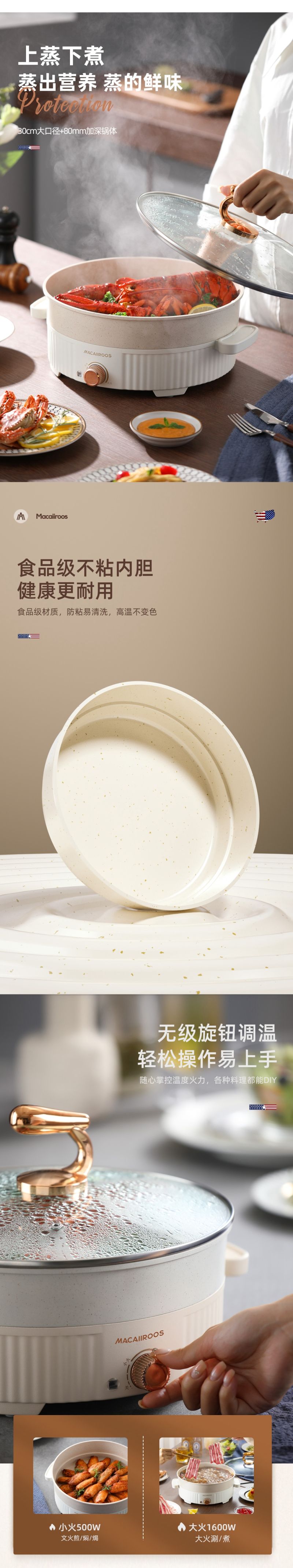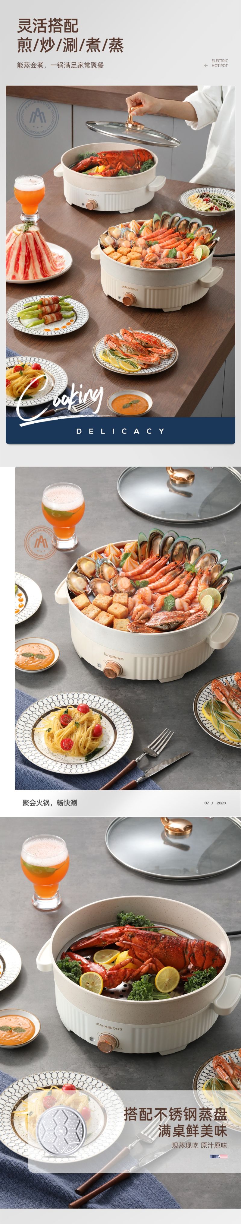 MACAIIROOS/迈卡罗5升多功能电煎锅-米白色MC-BD157