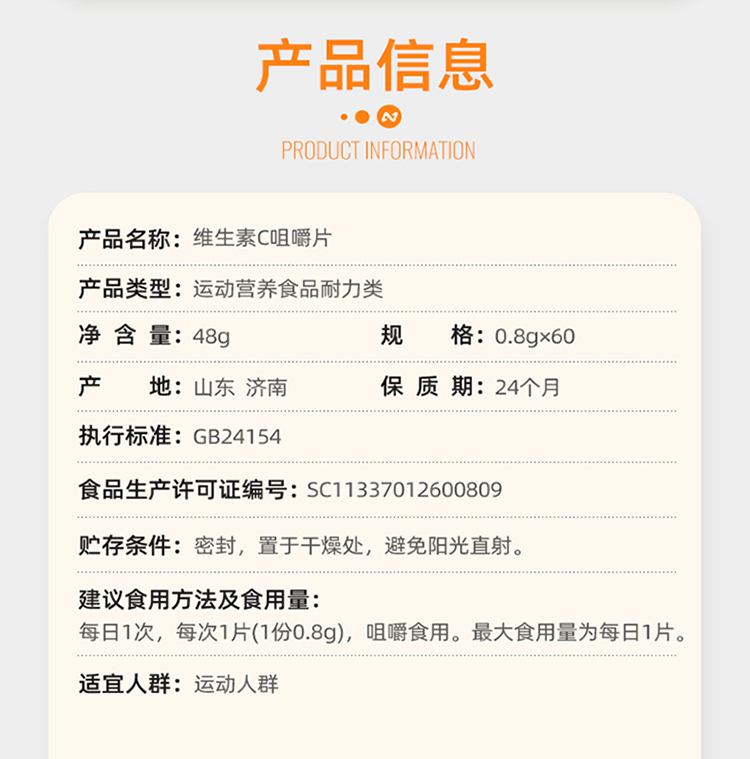 商品名称:诺特兰德维生素C咀嚼片60片*8瓶