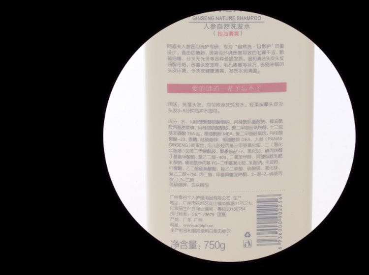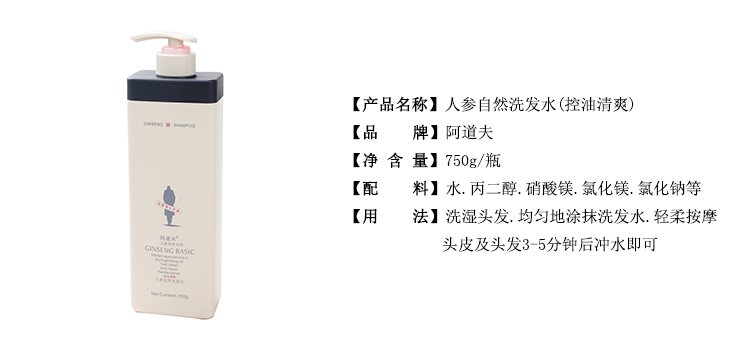 商品名称:Adolph/阿道夫人参自然控油清爽洗发水750g*2瓶