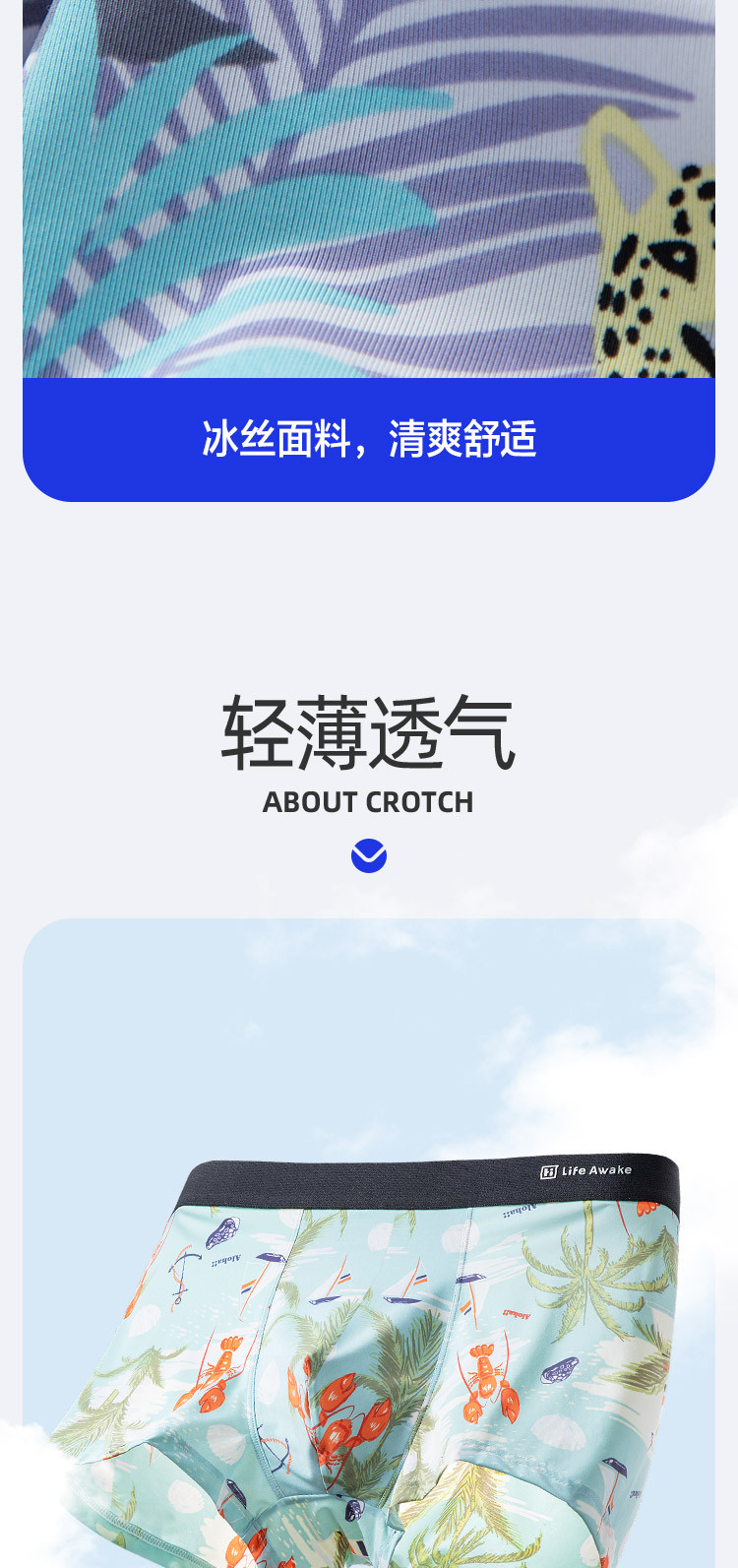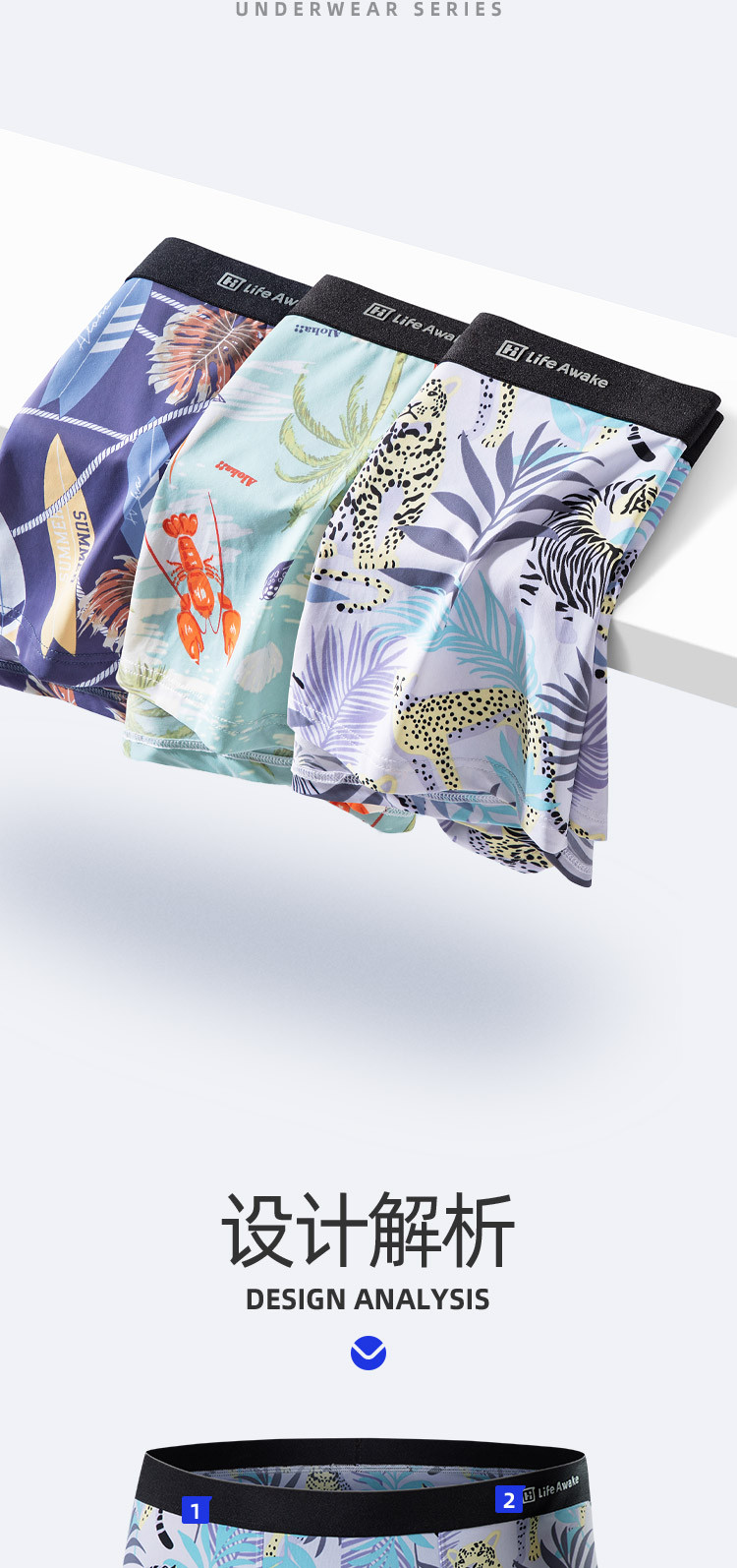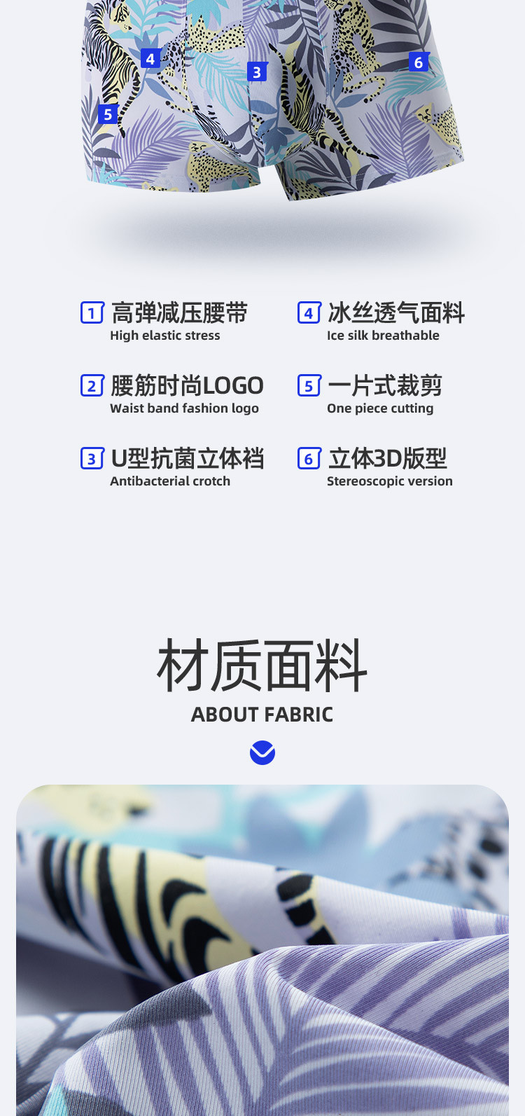 商品名称:【5A抑菌 冰丝透气】3条装男士内裤印花薄款平角四角沙滩短裤 356186