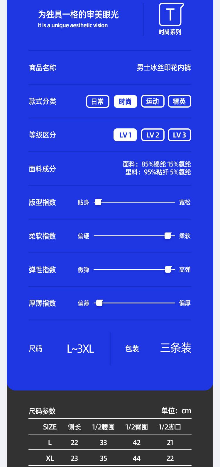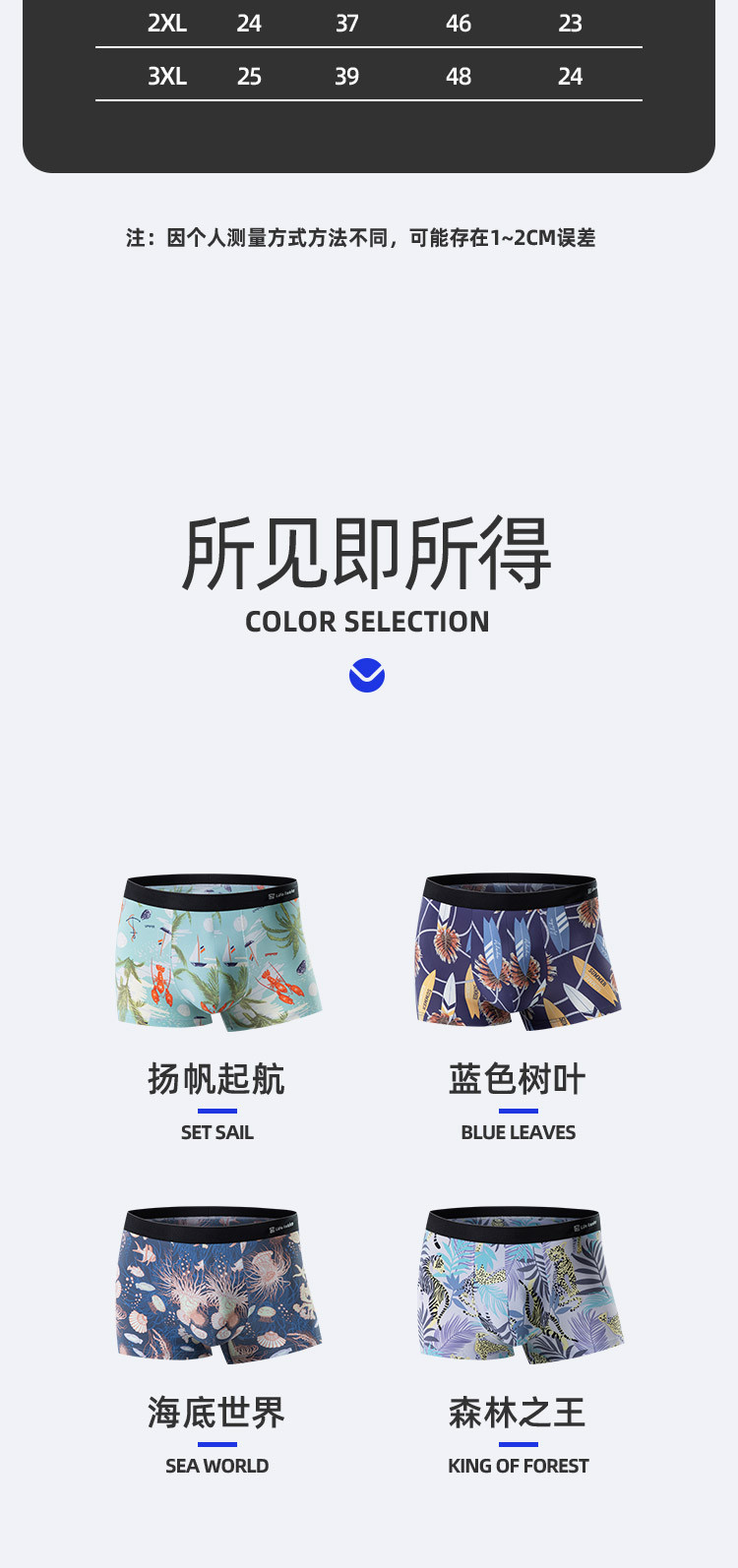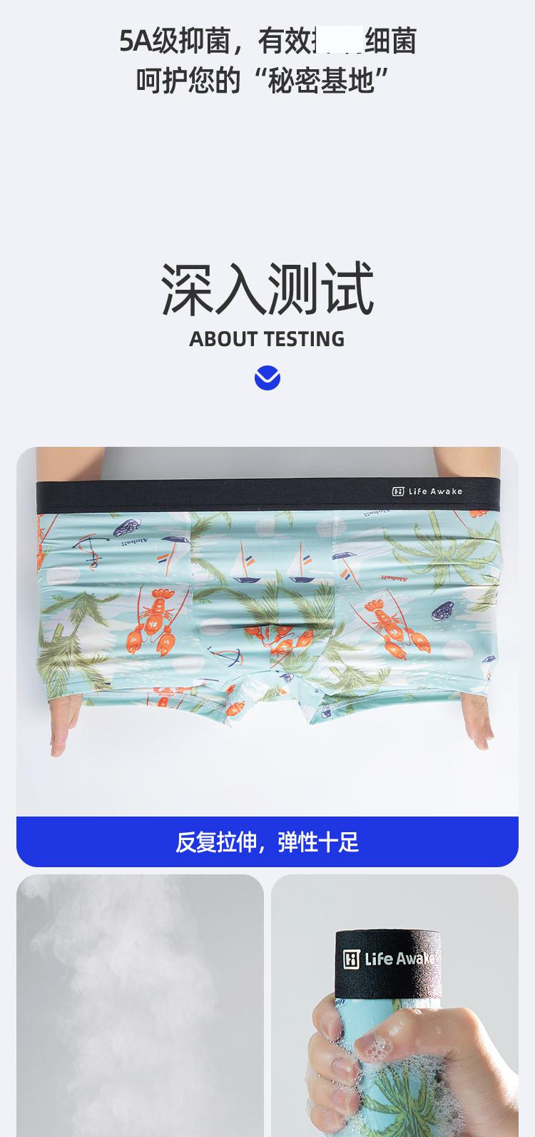 商品名称:【5A抑菌 冰丝透气】3条装男士内裤印花薄款平角四角沙滩短裤 356186