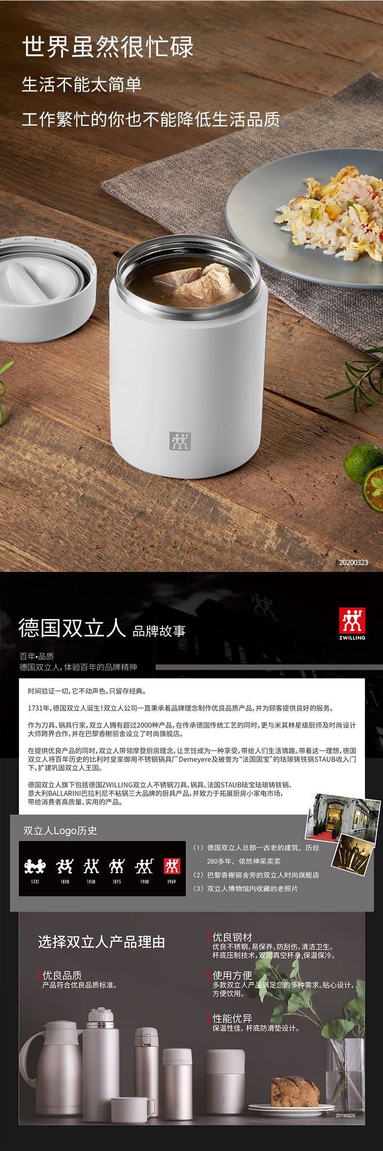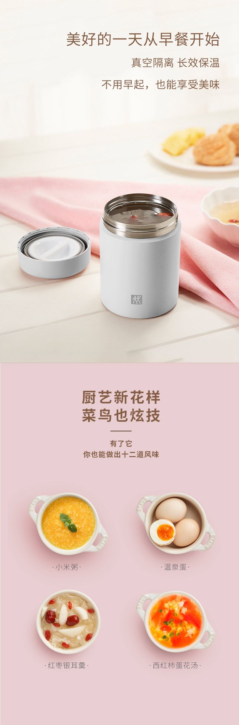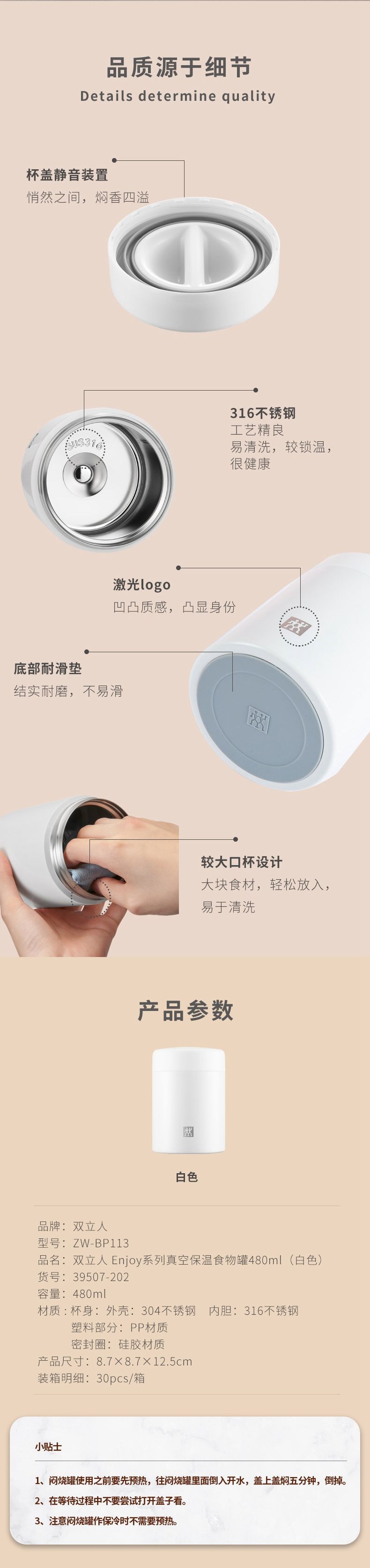 商品名称:ZWILLING/双立人Enjoy系列480毫升真空保温食物罐-白色ZW-BP113