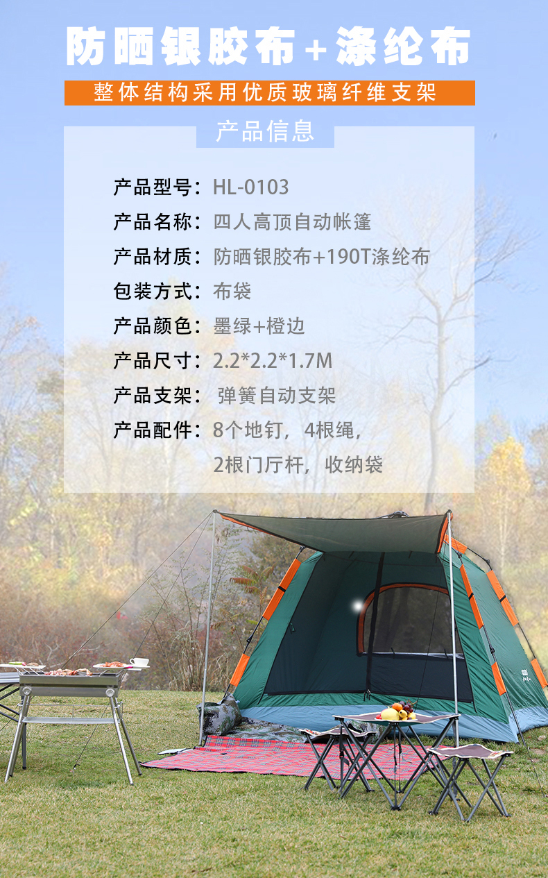 商品名称:汉乐美途四人高顶自动帐篷 HL-0103