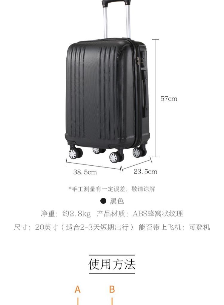 商品名称:京东京造20英寸时尚个性拉杆箱-黑色100017939574