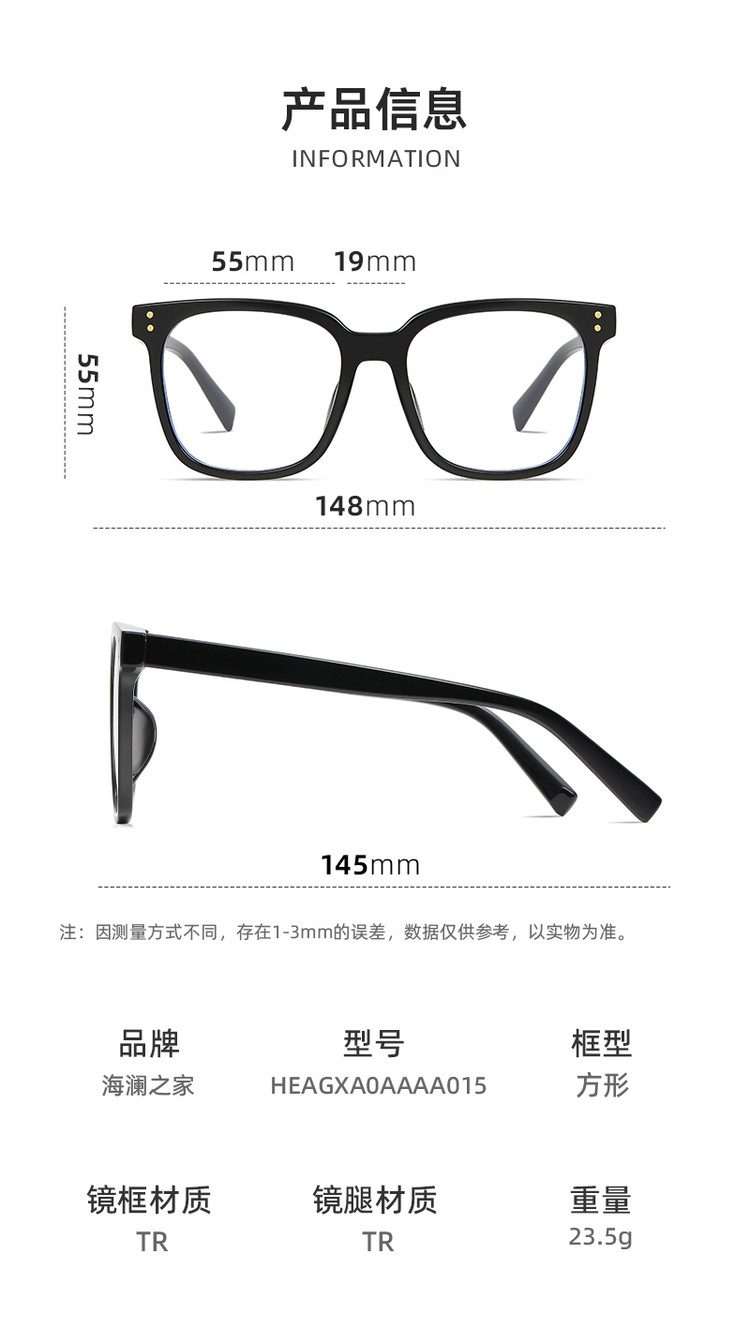 商品名称:防蓝光辐射眼镜女士眼镜近视女眼镜框男大脸显瘦可选变色镜片男款 149764