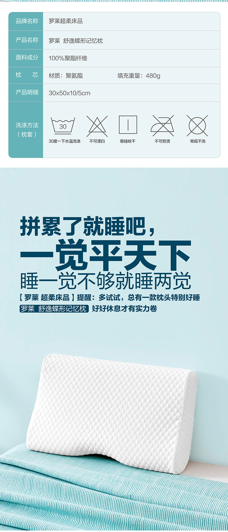 商品名称:【京东配送】LUOLAI/罗莱家纺舒逸蝶形记忆枕1只