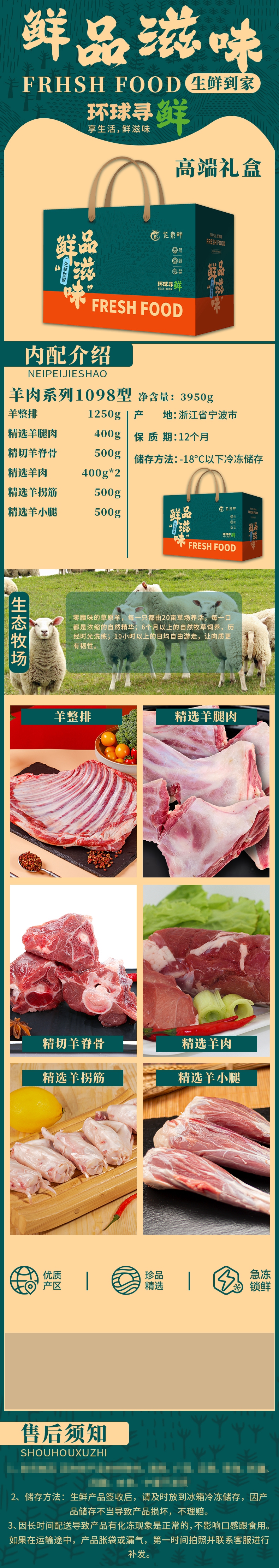 商品名称:【顺丰配送】龙泉畔鲜品滋味精选羊肉礼盒1098型3950g