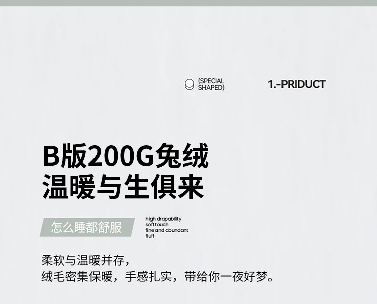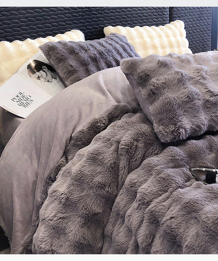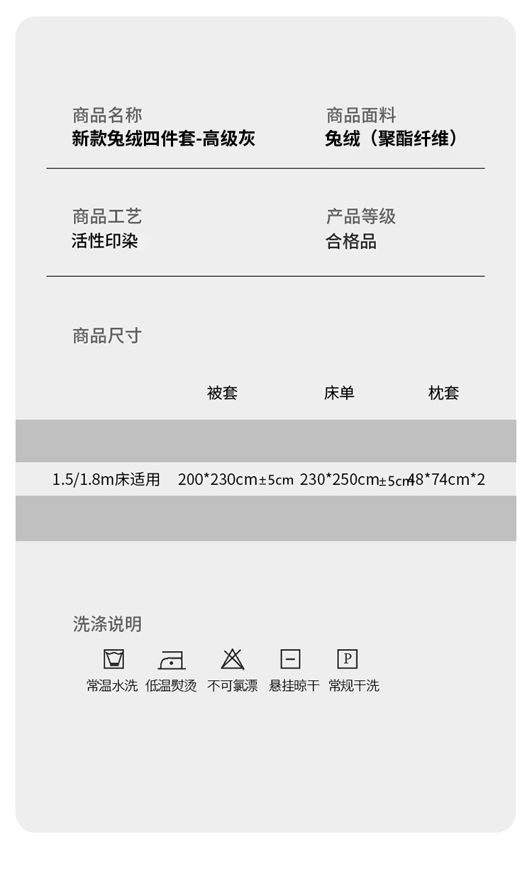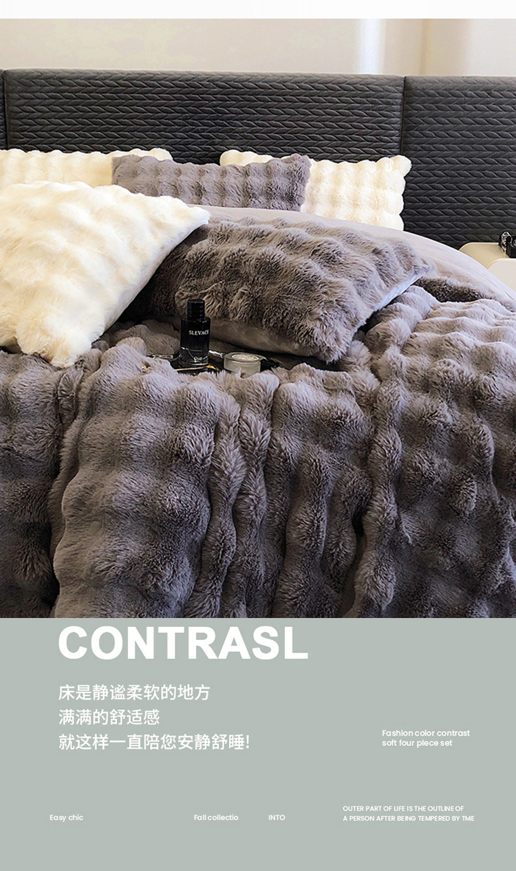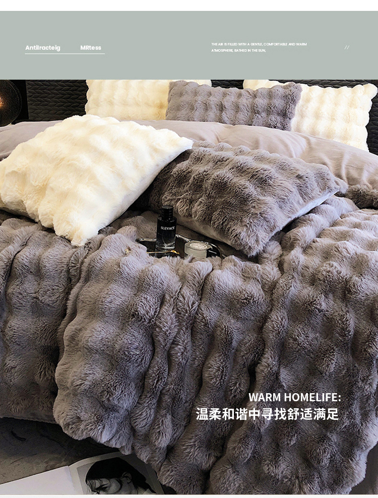 商品名称:PLOVER/啄木鸟新款兔绒床品四件套-高级灰200*230cm