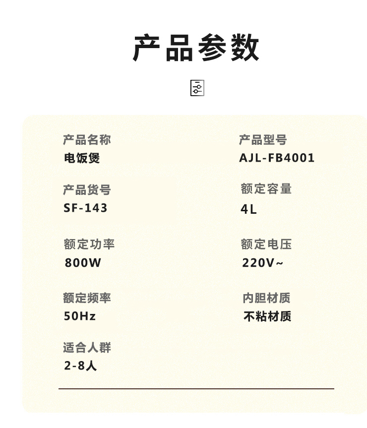 商品名称:SANSUI/山水4升电饭煲SF-143