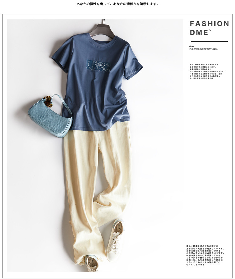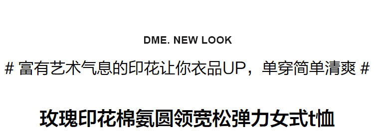 商品名称:【玫瑰印花】夏季圆领短袖宽松t恤女棉氨针织女式t恤 918401