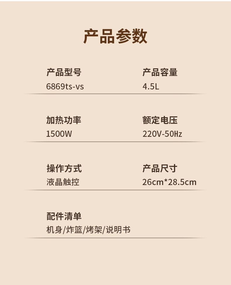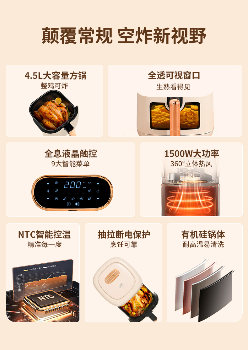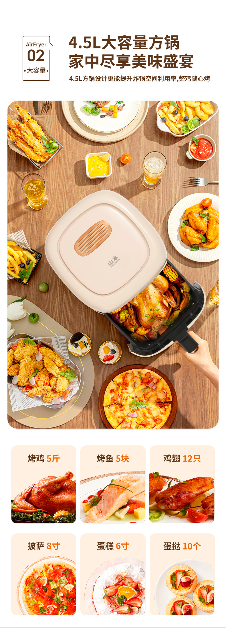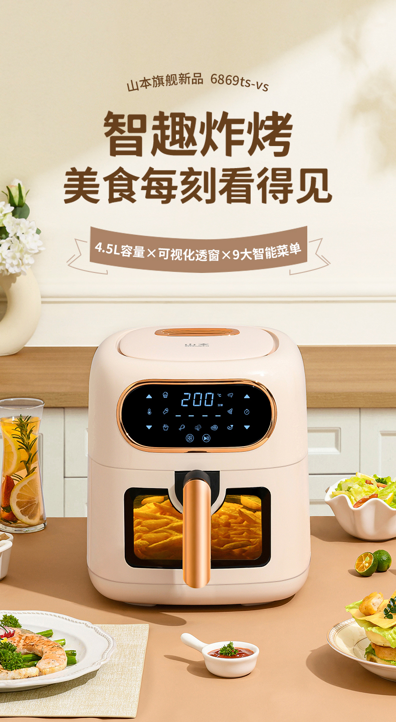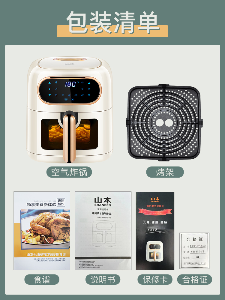 商品名称:【京东/顺丰配送】SHANBEN/山本4.5升可视空气炸锅6869TS-VS