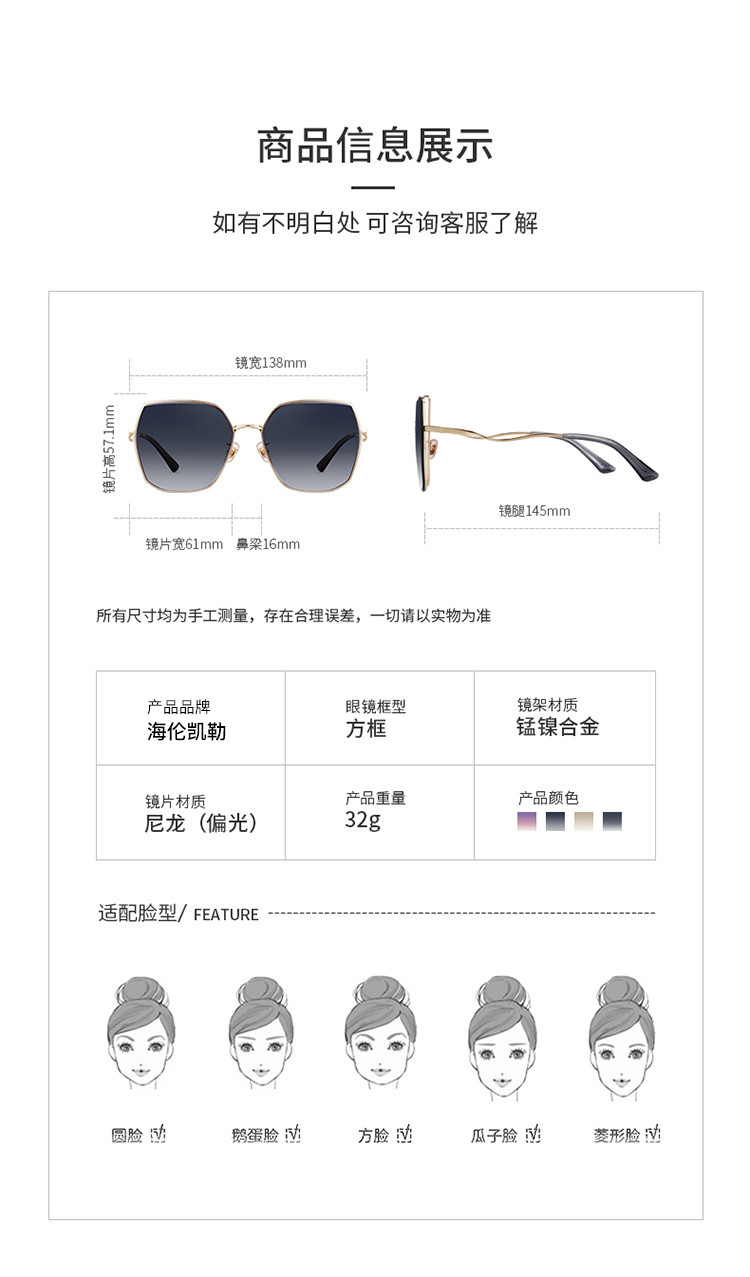 商品名称:海伦凯勒太阳镜防紫外线眼镜潮街拍大脸墨镜女显瘦 508379