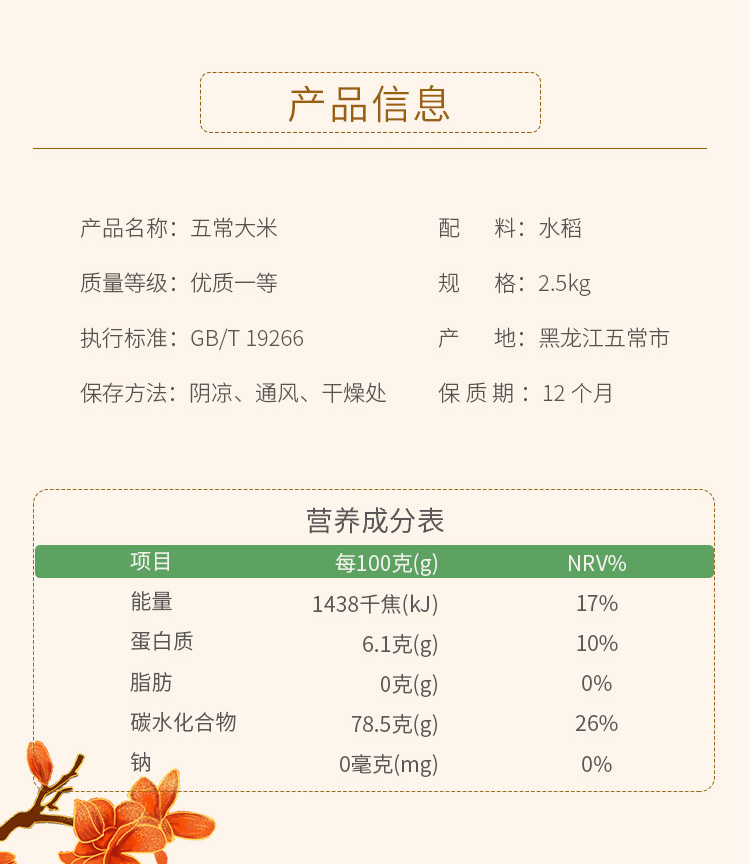商品名称:乐养优品财运亨通欧盟有机五常大米2.5kg