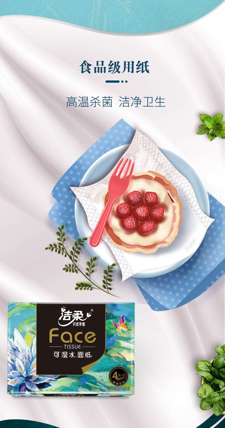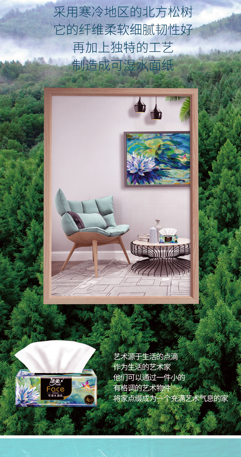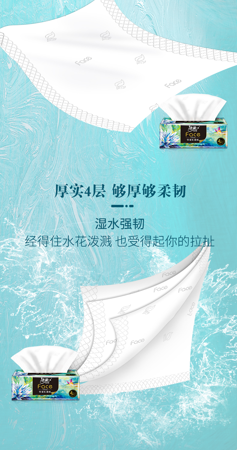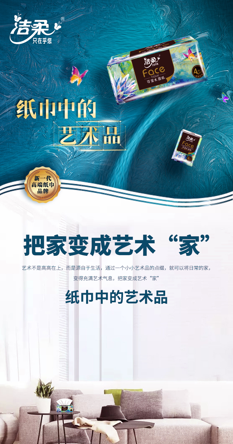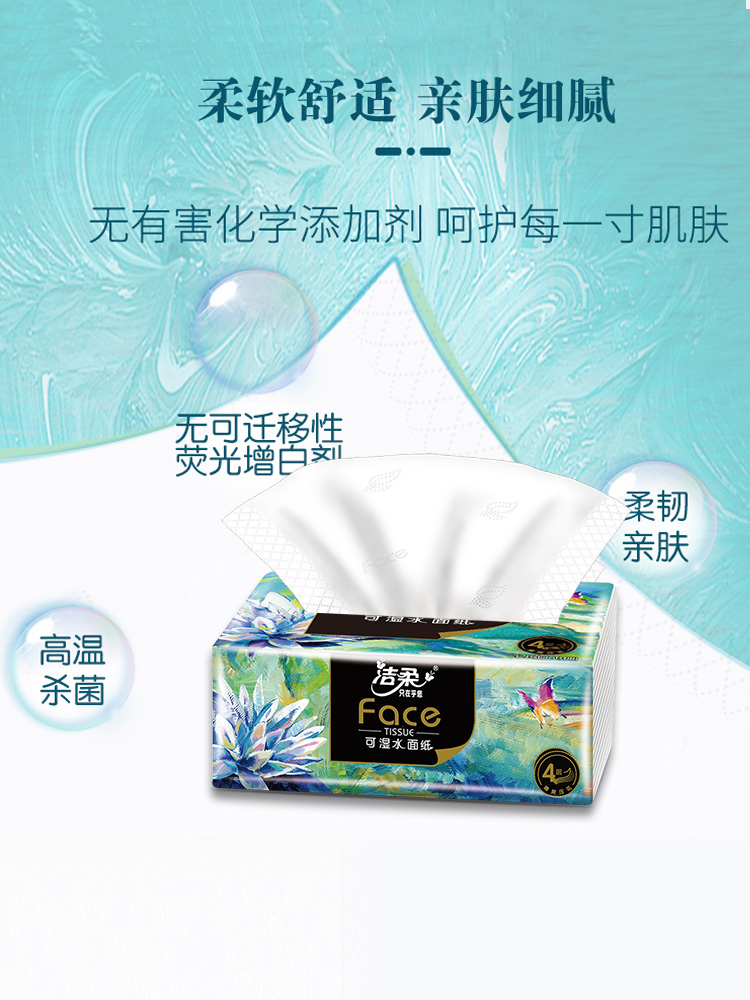 C&S/洁柔Face自然无香四层艺术油画系列可湿水黑软抽纸80抽*4包*8提