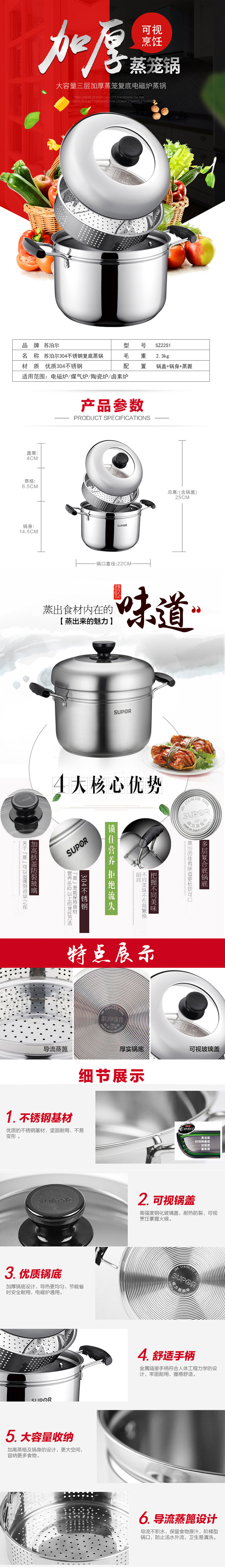 商品名称:SUPOR/苏泊尔22cm304不锈钢复底蒸锅SZ22S1