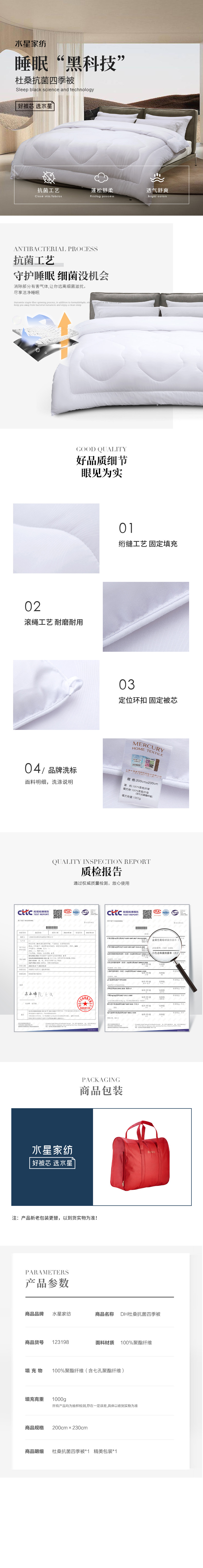 商品名称:【京东配送】水星家纺杜桑抗菌四季被200*230cm 填充克重1000g