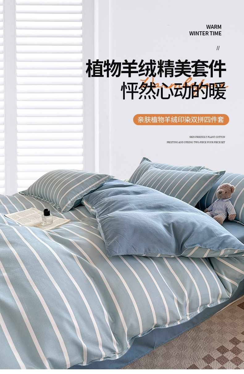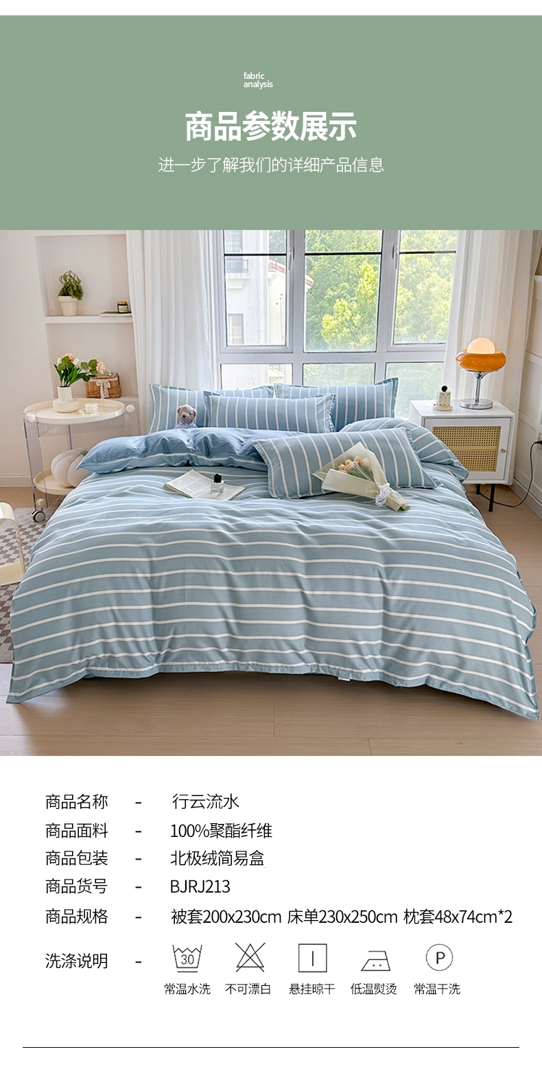 Bejirog/北极绒行云流水印染双拼床品四件套-简易盒装200*230cm