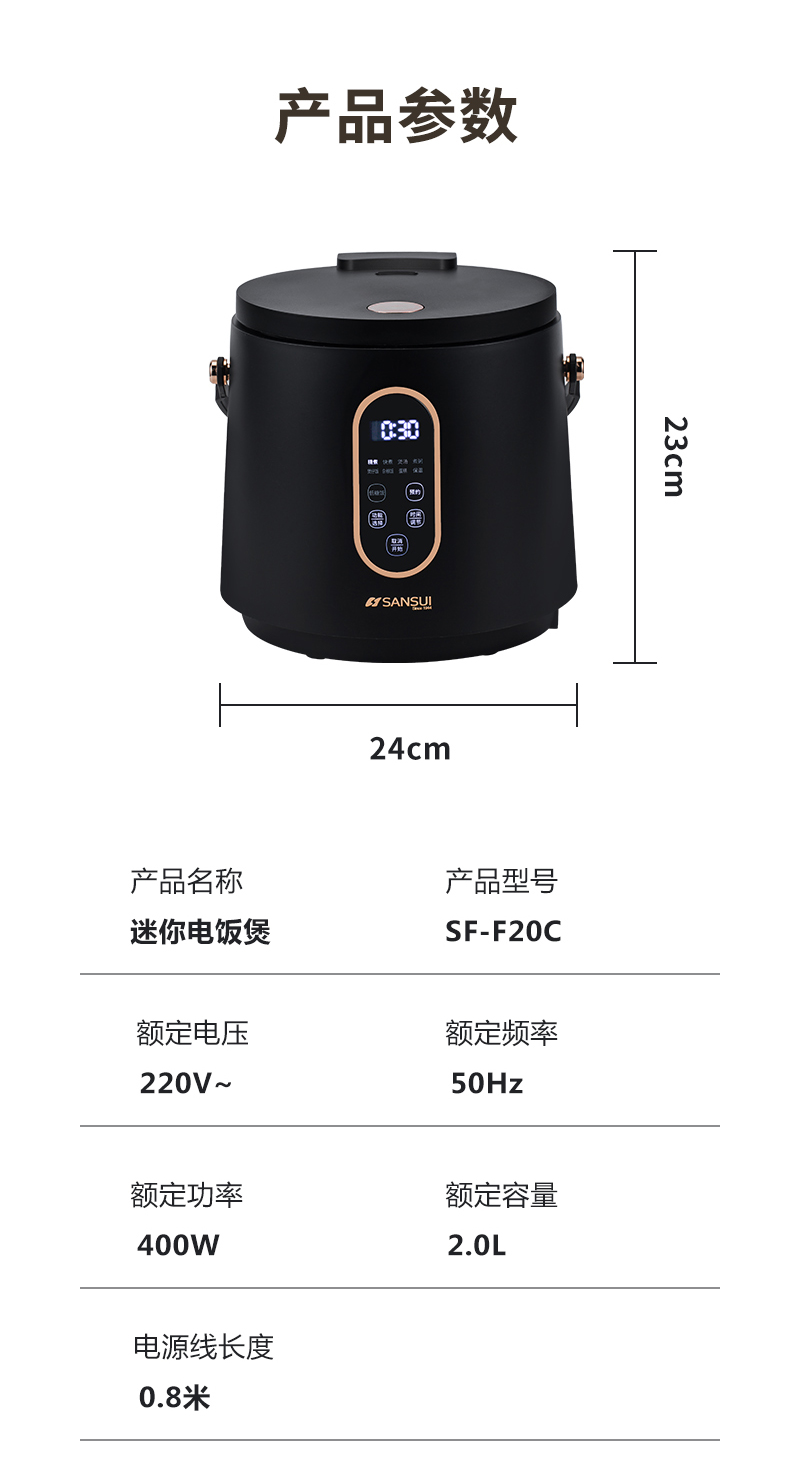 商品名称:SANSUI/山水2升低糖电饭煲SF-F20C