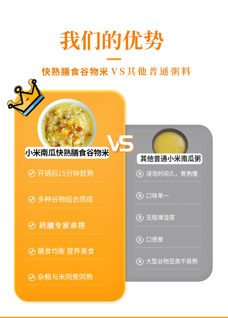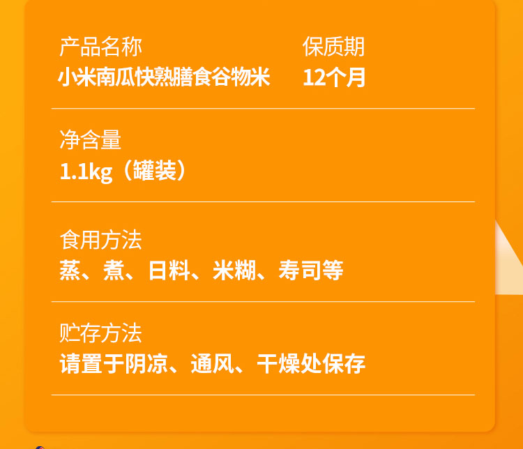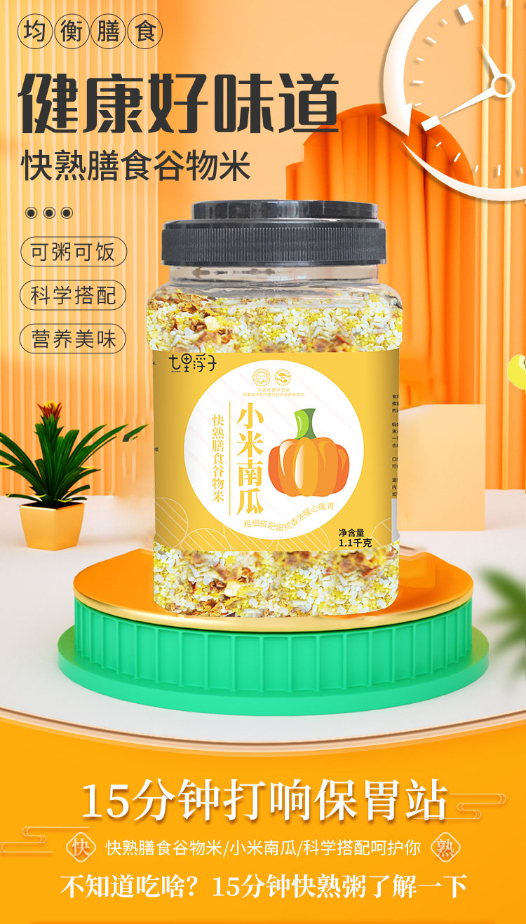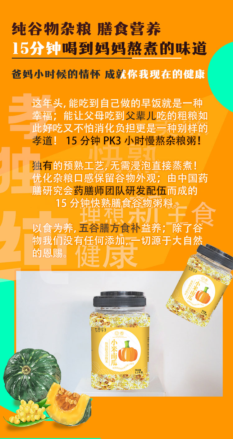 商品名称:七里浮子15分钟快熟小米南瓜膳食粥料1.1kg