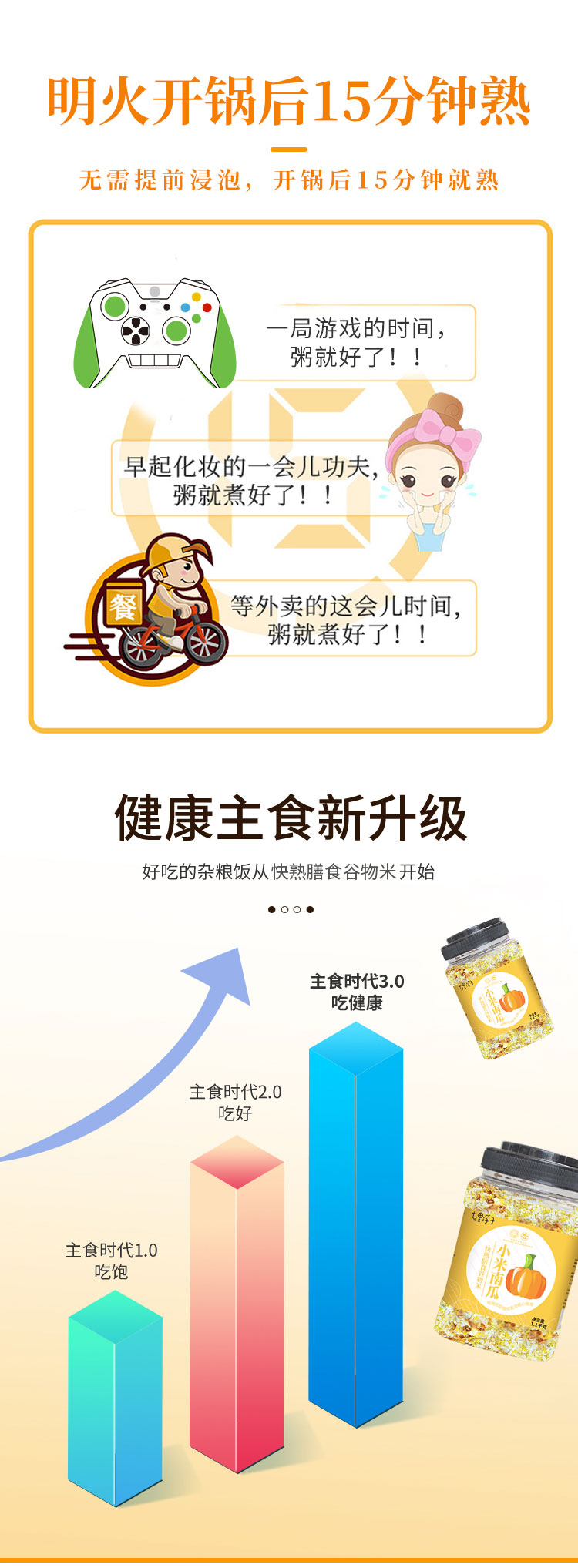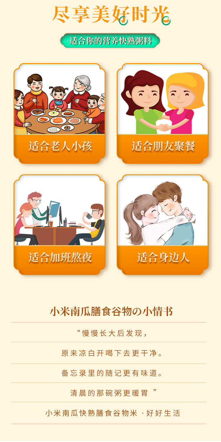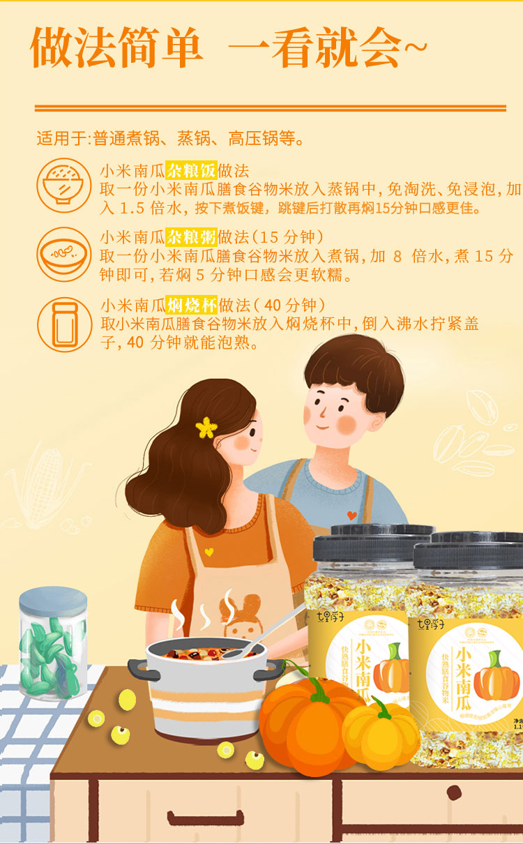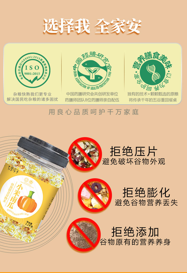 商品名称:七里浮子15分钟快熟小米南瓜膳食粥料1.1kg