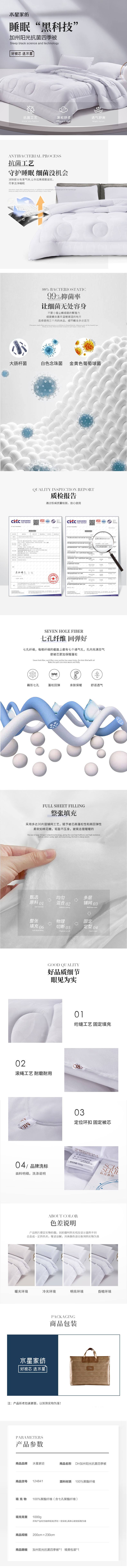 商品名称:【京东配送】水星家纺加州阳光抗菌四季被200*230cm 填充克重1000g