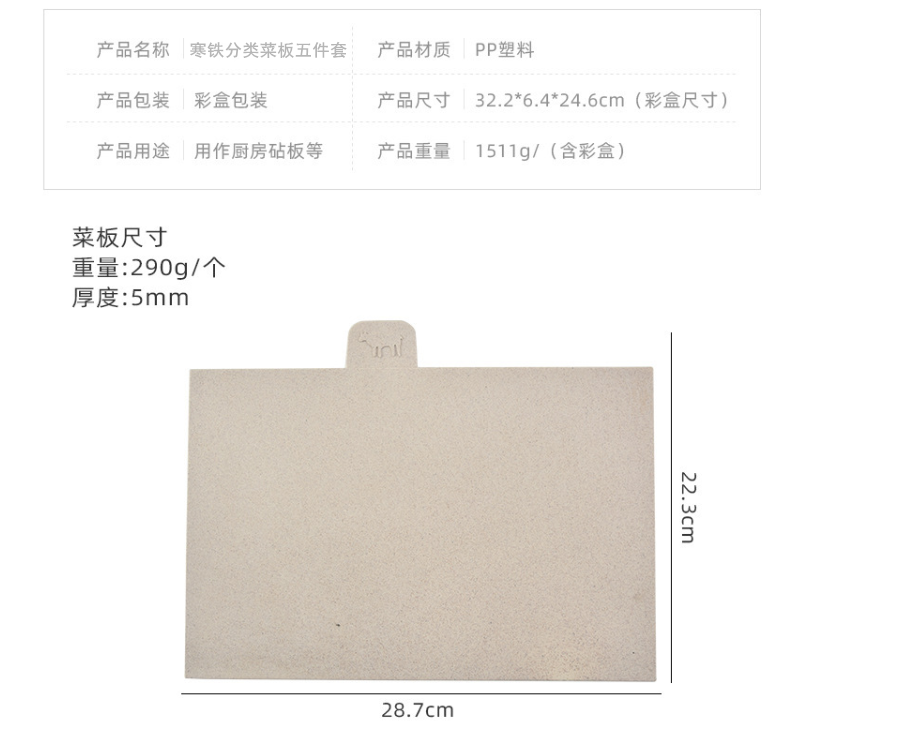 商品名称:(WS)寒铁分类菜板厨具五件套IRON-0215
