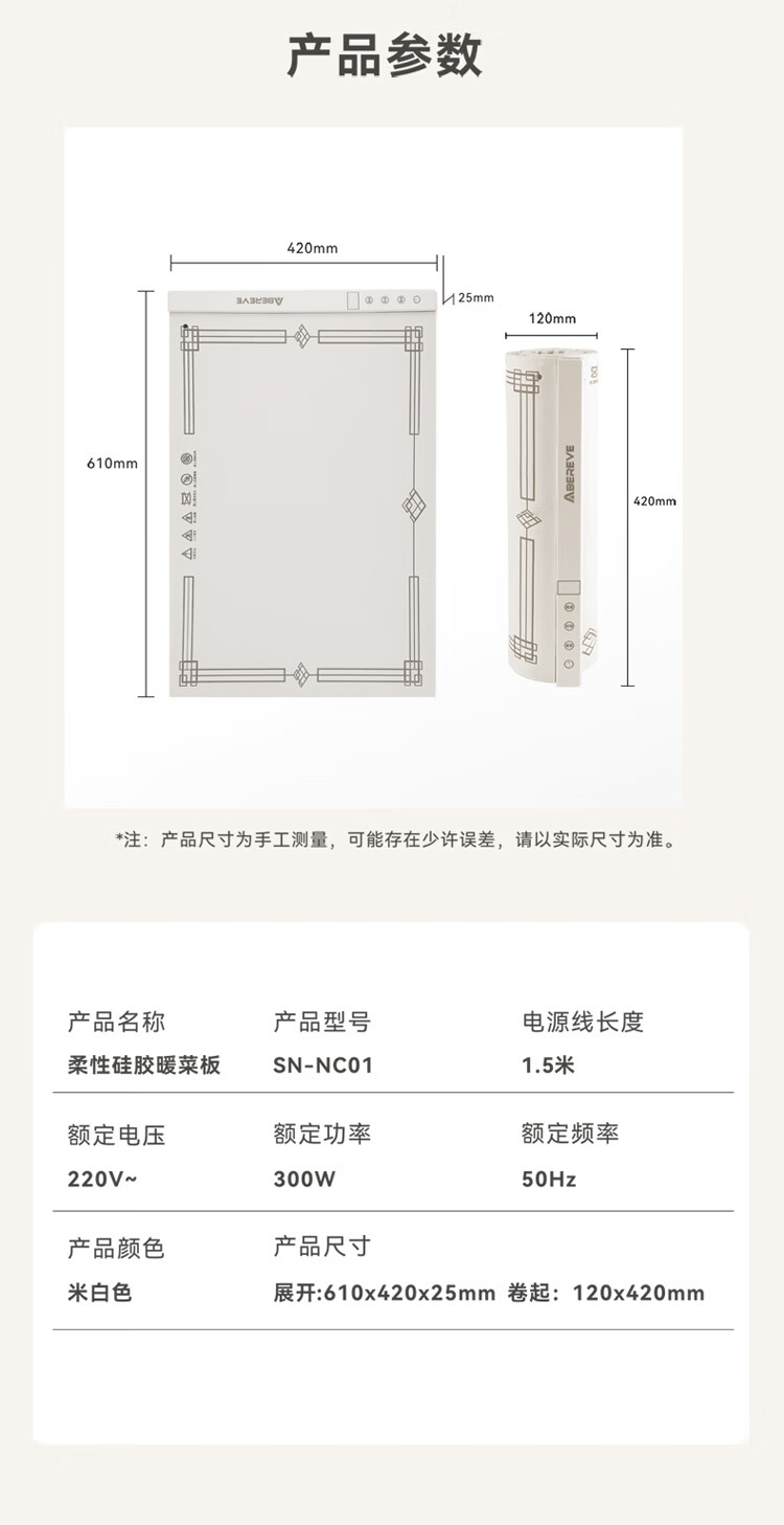 商品名称:ABEREVE/艾贝丽柔性硅胶暖菜板SN-NC01