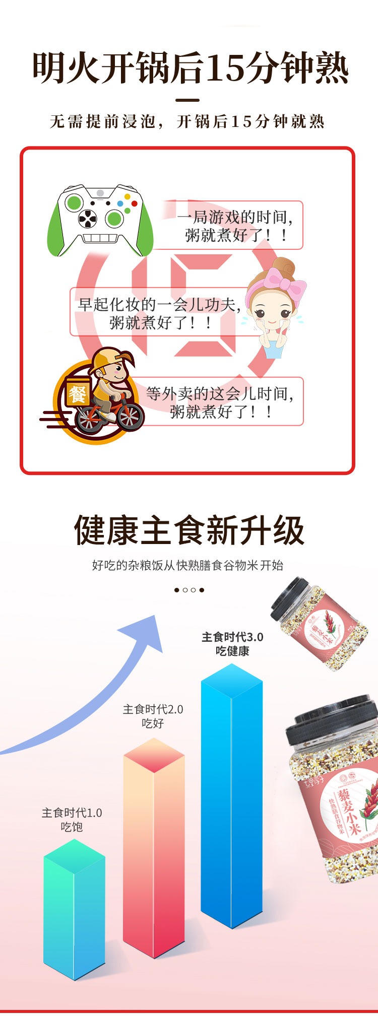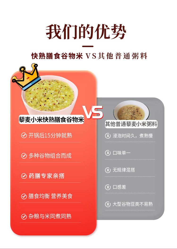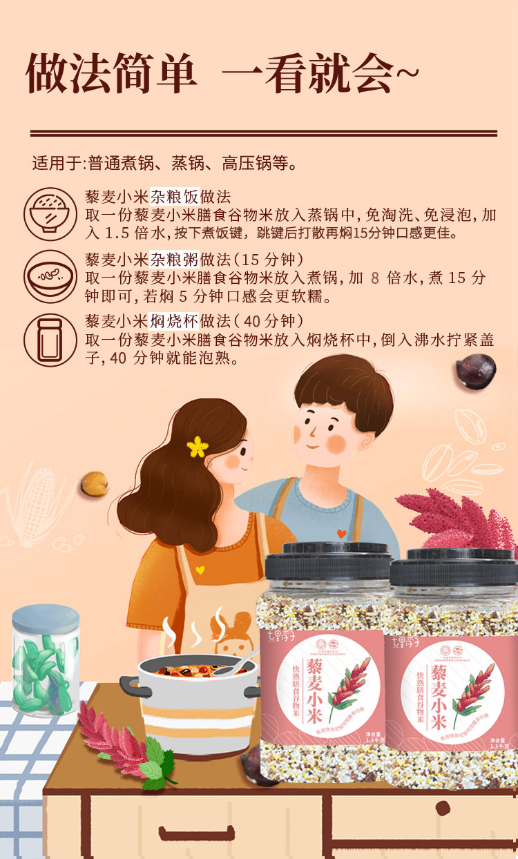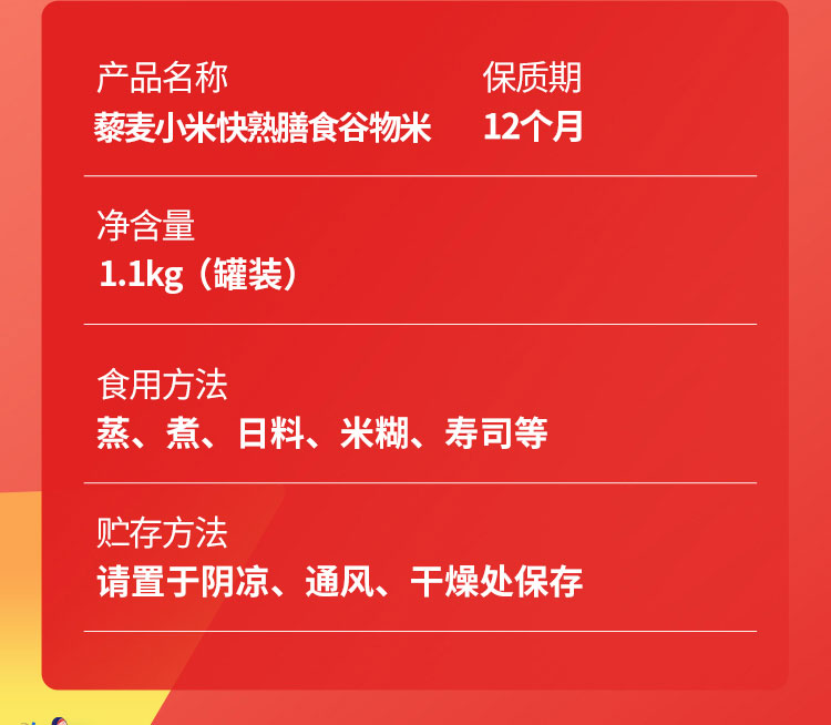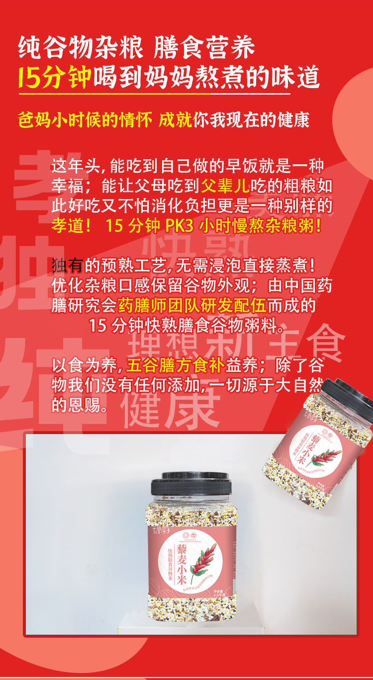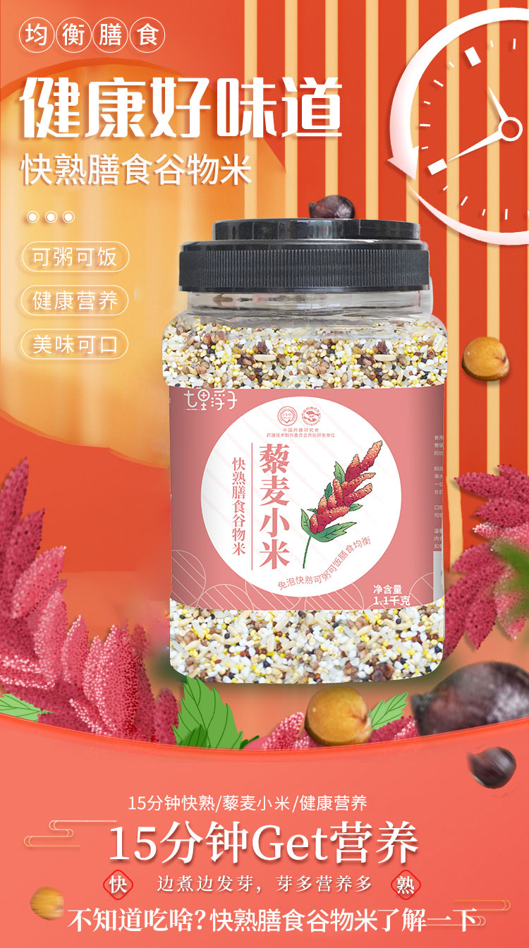 商品名称:七里浮子15分钟快熟藜麦小米膳食粥料1.1kg