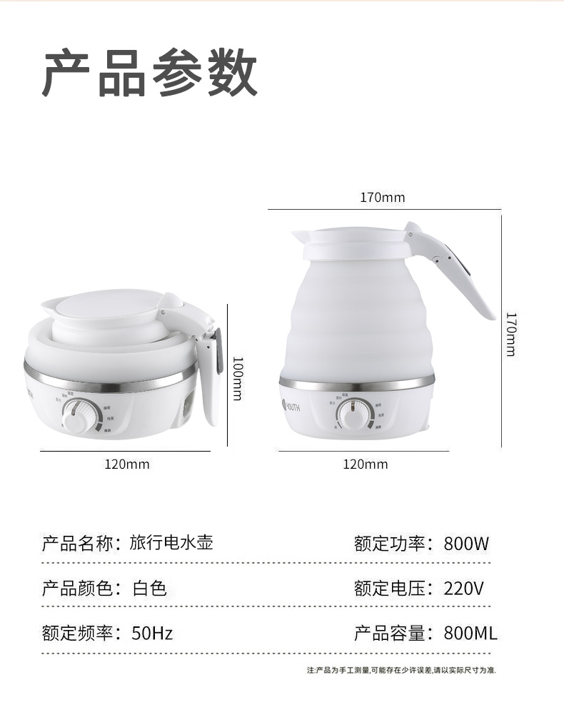 商品名称:AIYOUTH/艾青春800毫升折叠旅行电水壶CS-0711