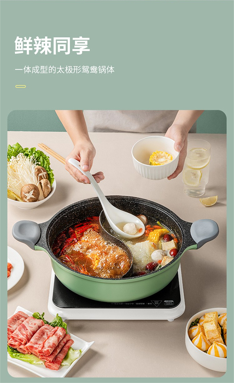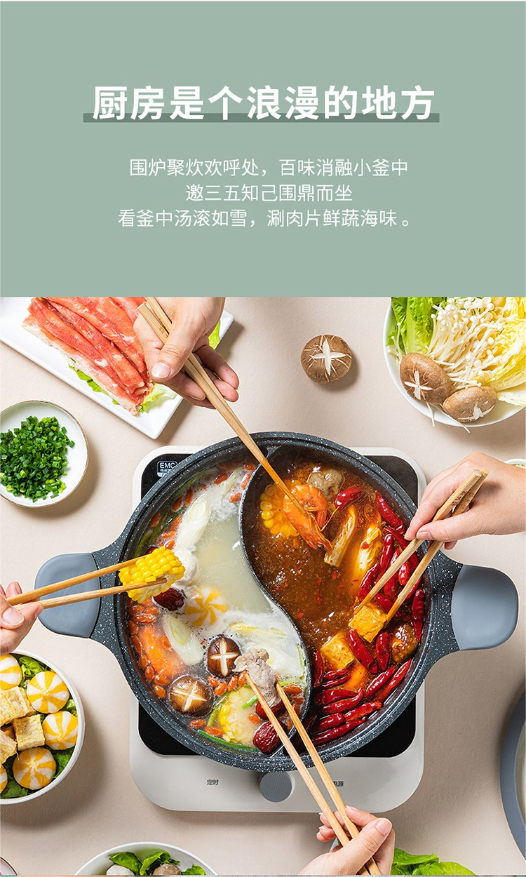商品名称:COOKERKING/炊大皇4升竹青石鸳鸯火锅HG30ZQ