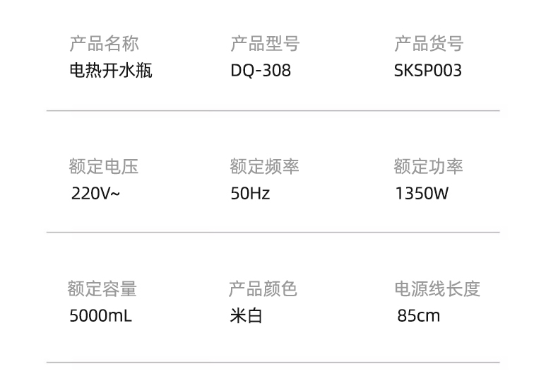 商品名称:SANSUI/山水5升电热开水瓶SKSP003