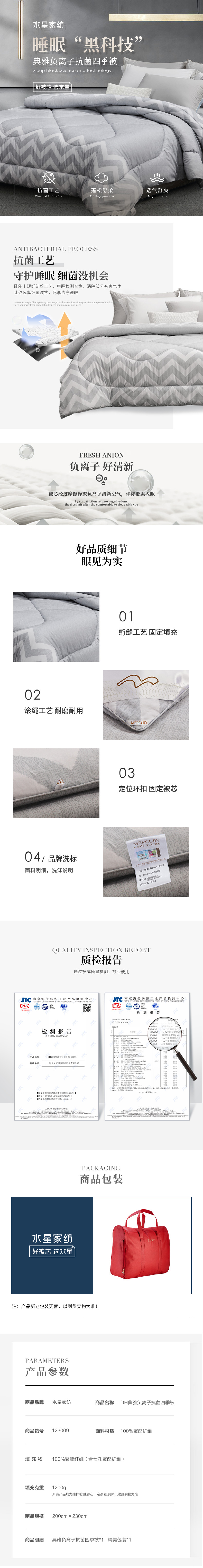 商品名称:【京东配送】水星家纺典雅负离子抗菌四季被200*230cm 填充克重1200g