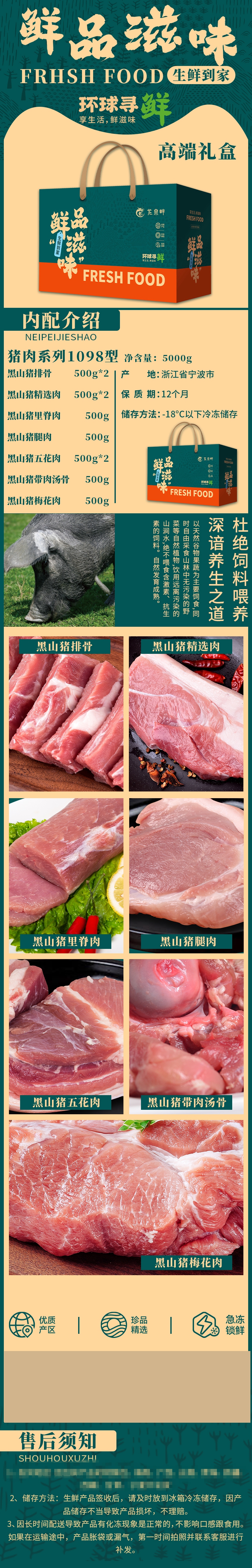 商品名称:【顺丰配送】龙泉畔鲜品滋味黑猪肉礼盒1098型5000g