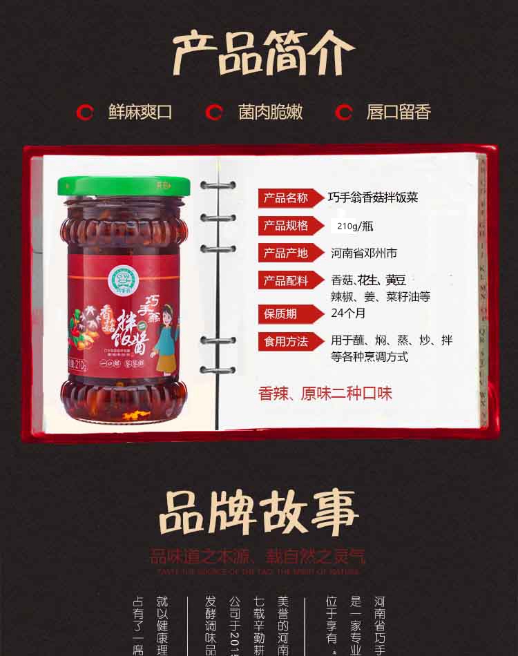 商品名称:巧手翁香菇拌饭酱210g*5瓶