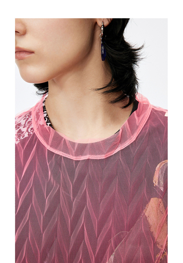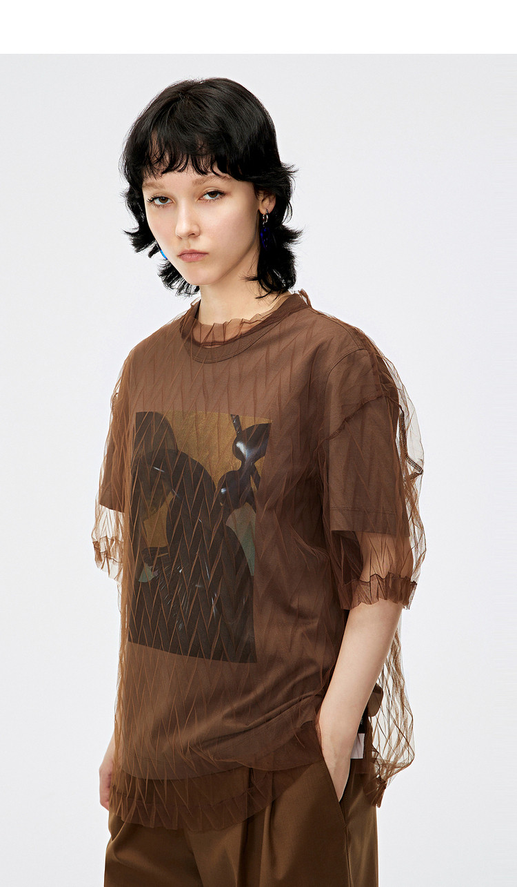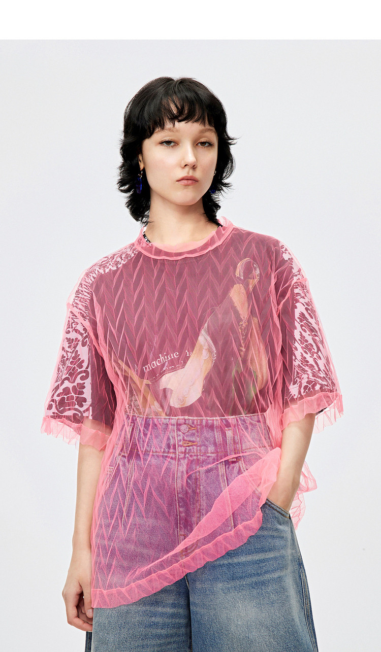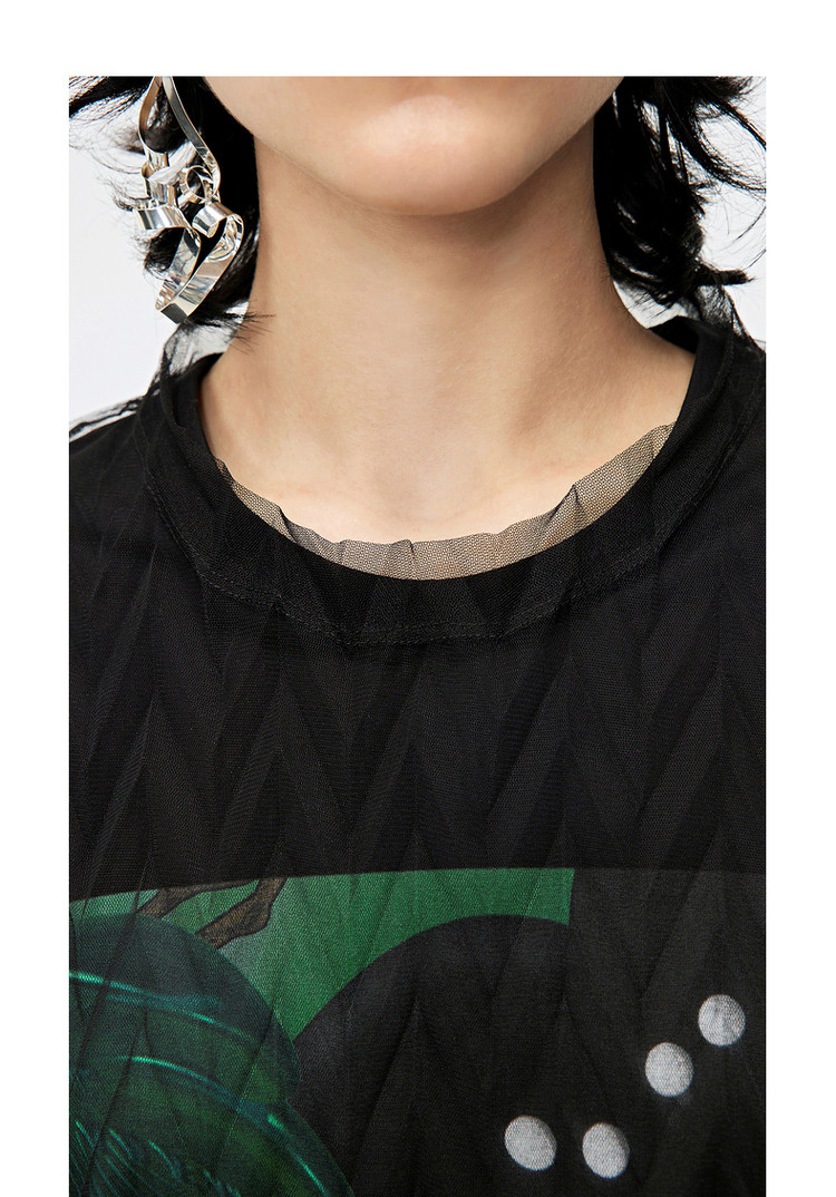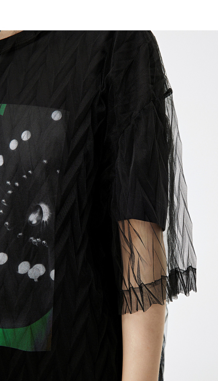 秋T恤短袖网纱罩衫上衣女 584715
