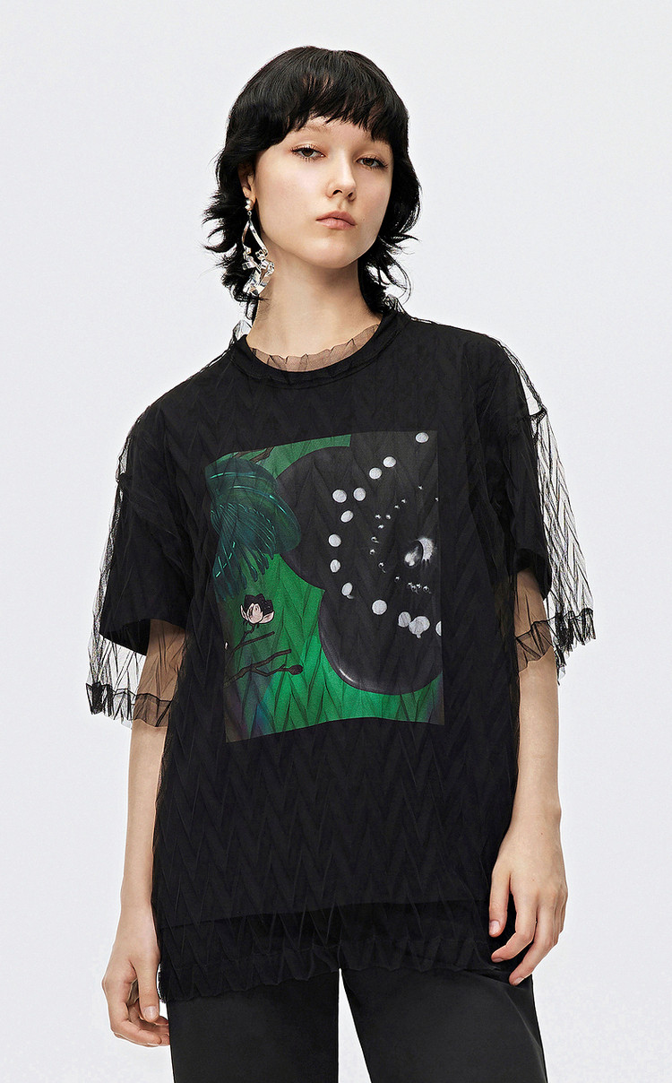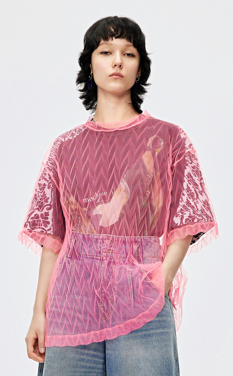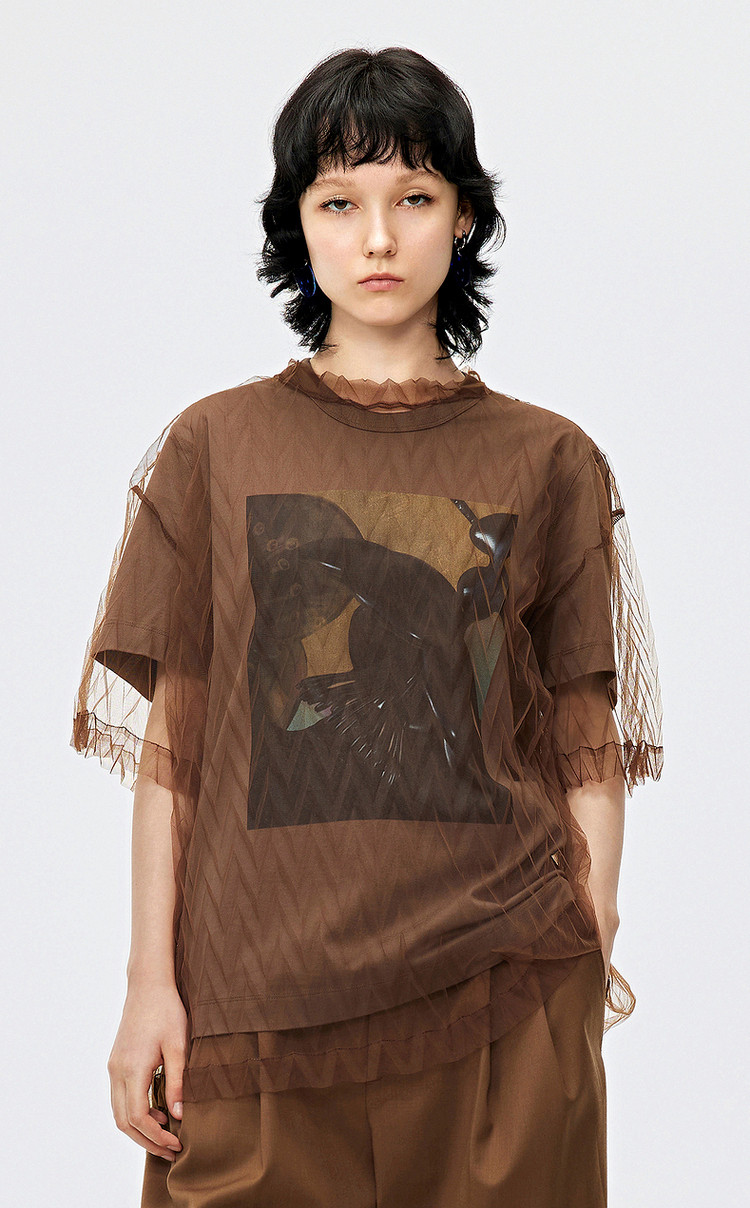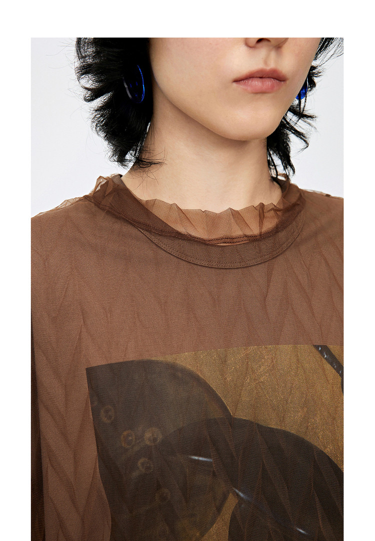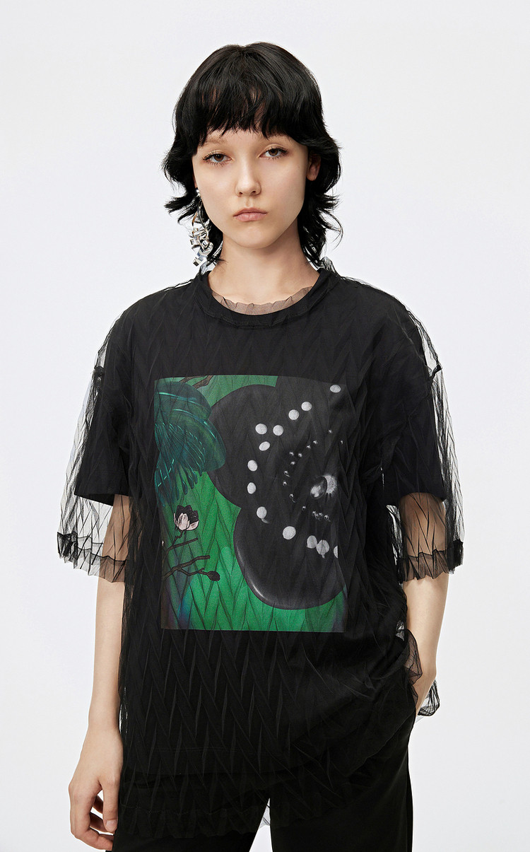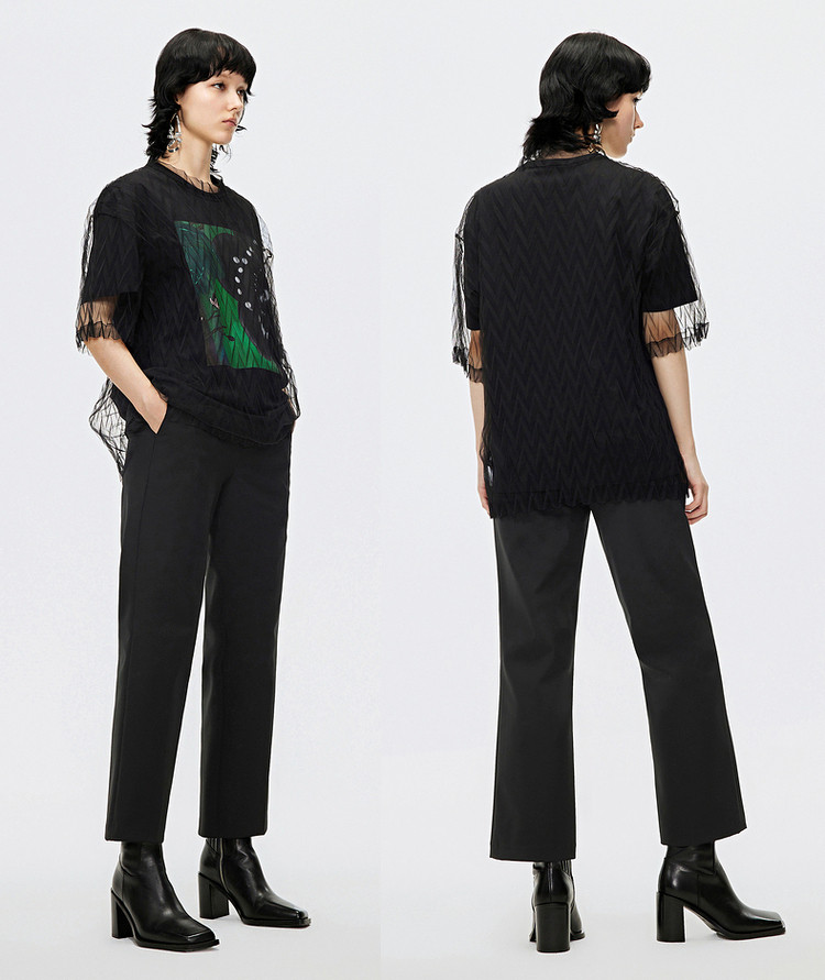 秋T恤短袖网纱罩衫上衣女 584715