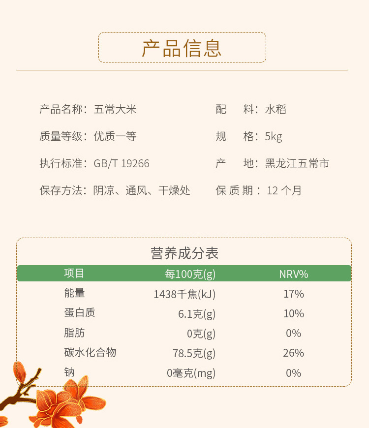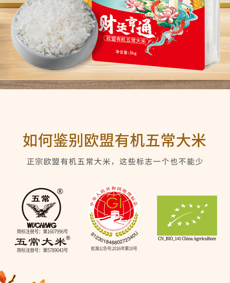 商品名称:乐养优品财运亨通欧盟有机五常大米5kg