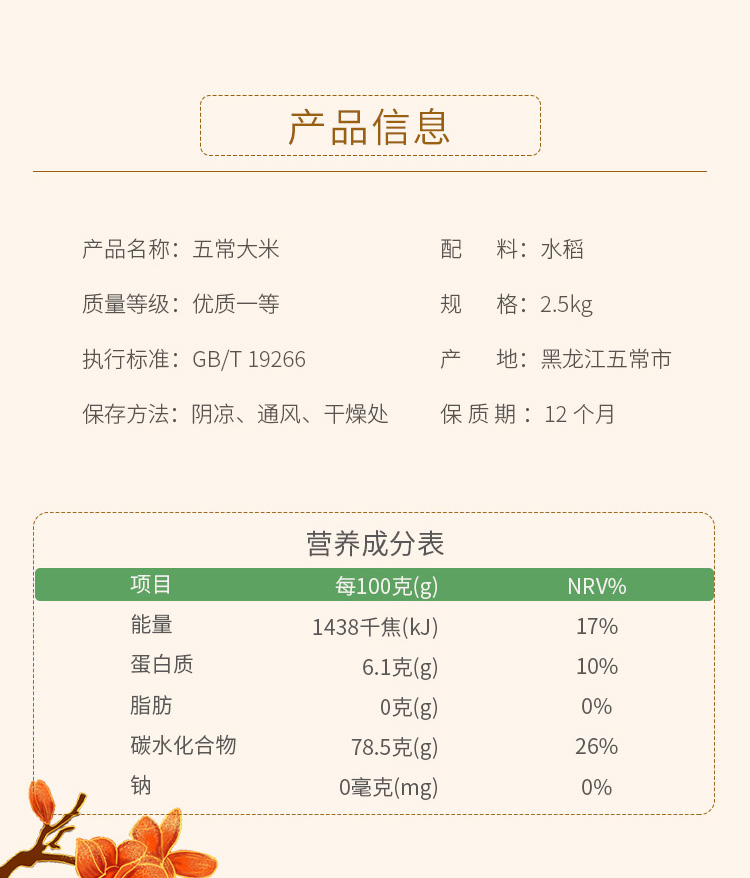 商品名称:乐养优品金玉满堂有机五常大米2.5kg
