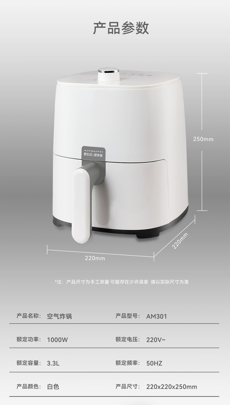 AIYOUTH/艾青春3.3升空气炸锅-白色AM301