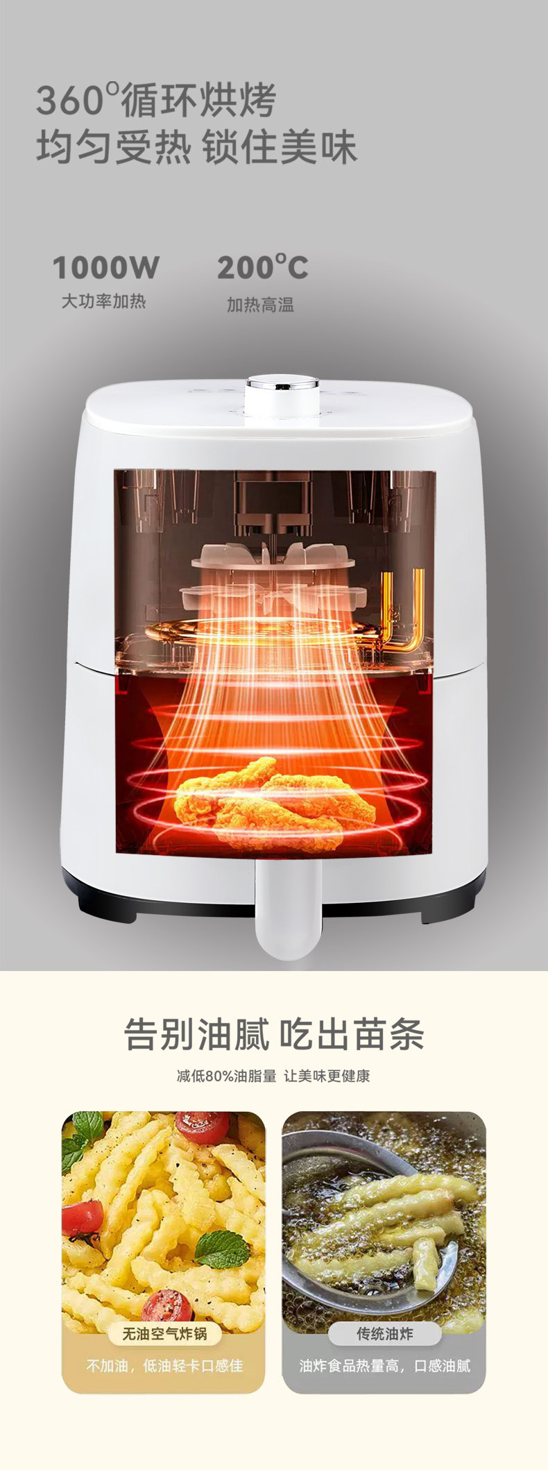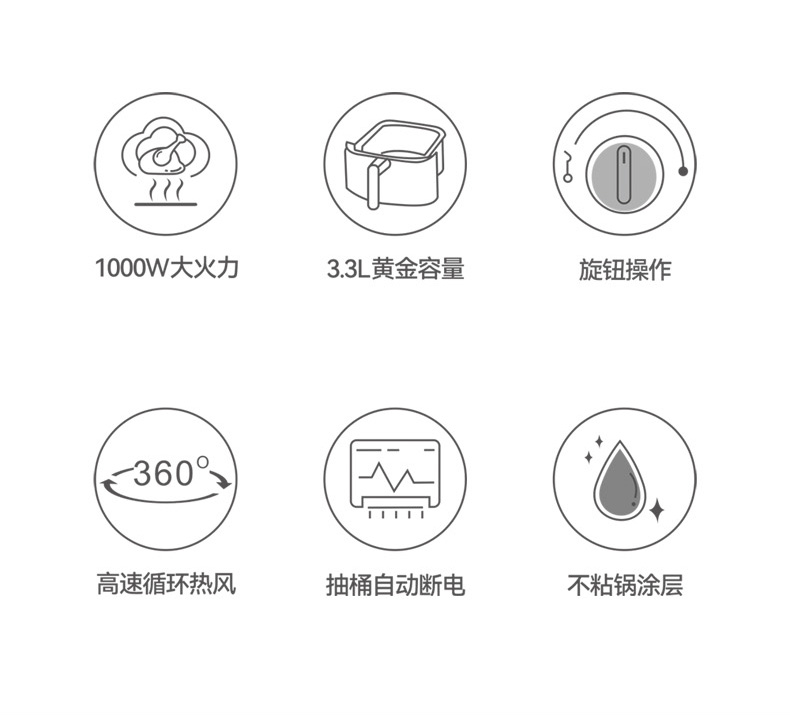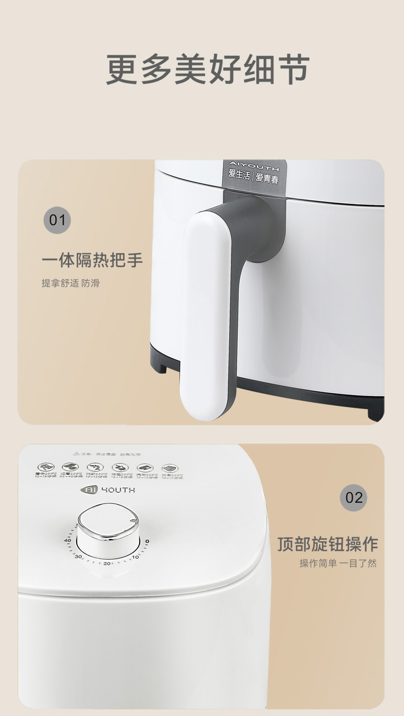 商品名称:AIYOUTH/艾青春3.3升空气炸锅-白色AM301