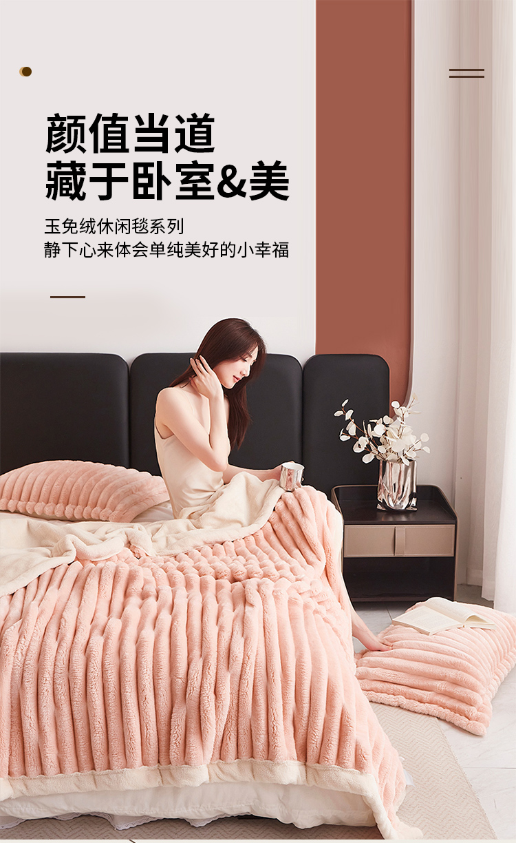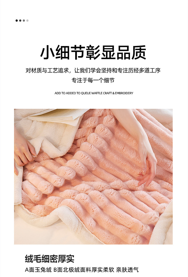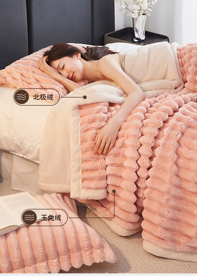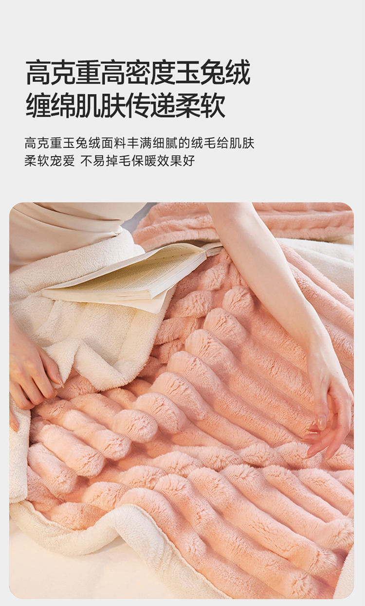 商品名称:PLOVER/啄木鸟玉兔绒毯-玉脂粉180*200cm 2460g