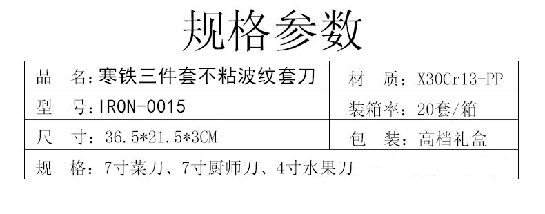 商品名称:(WS)寒铁不粘波纹刀具三件套*2套IRON-0015