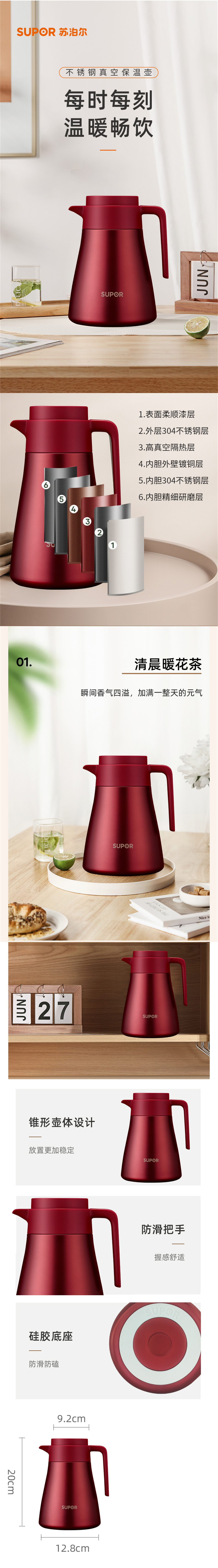 商品名称:SUPOR/苏泊尔1.2升不锈钢真空保温壶-浆果红KC12HS50