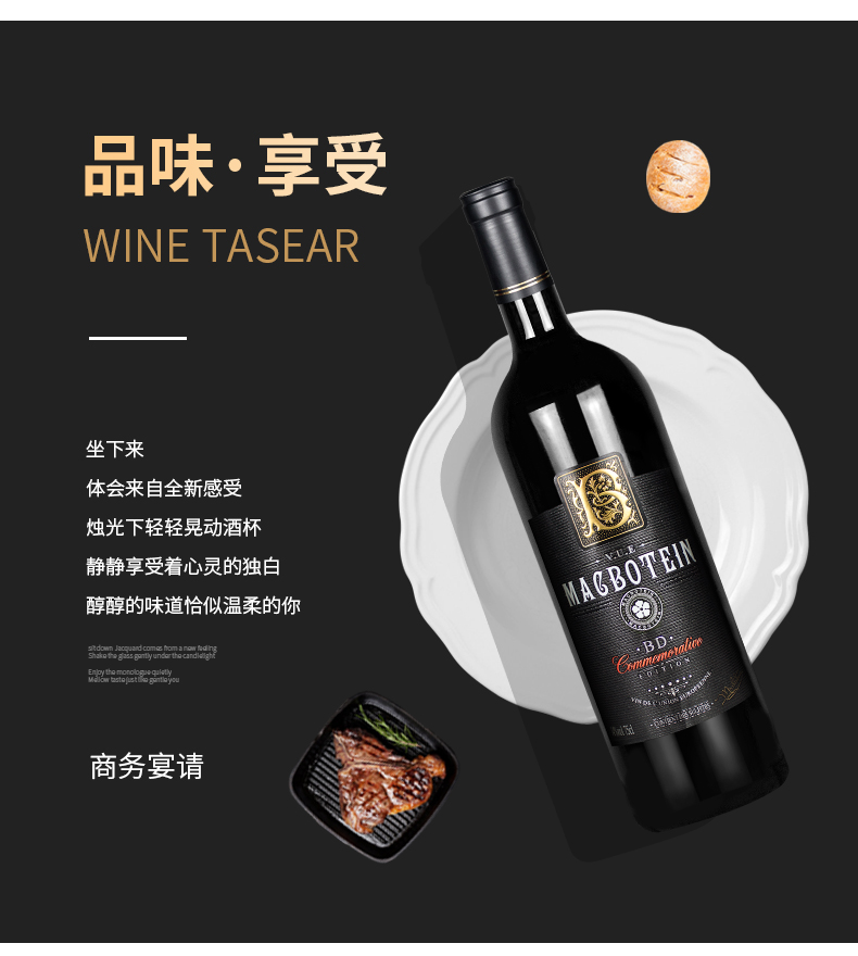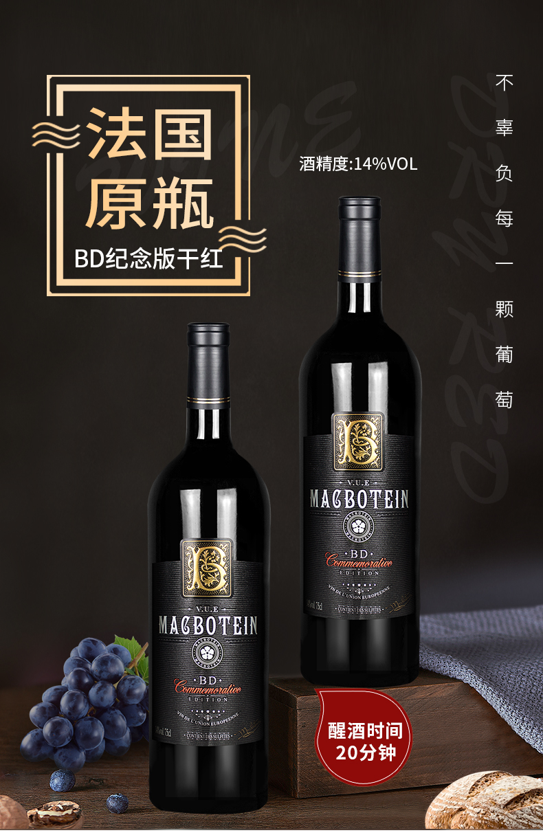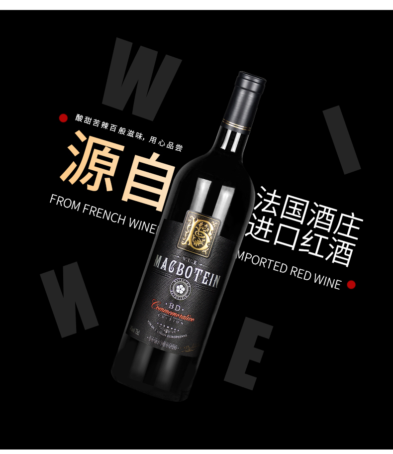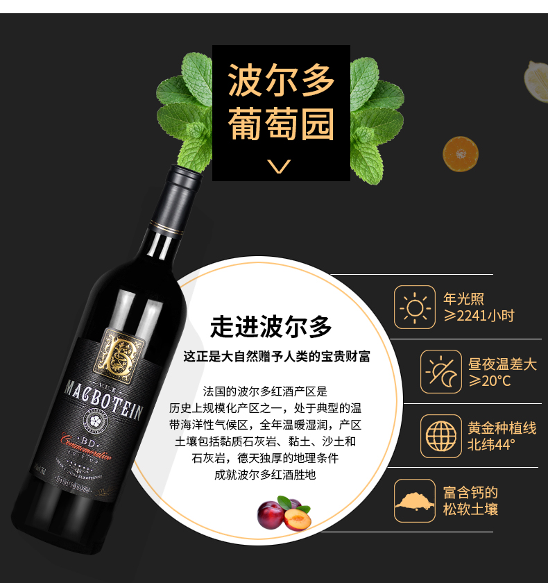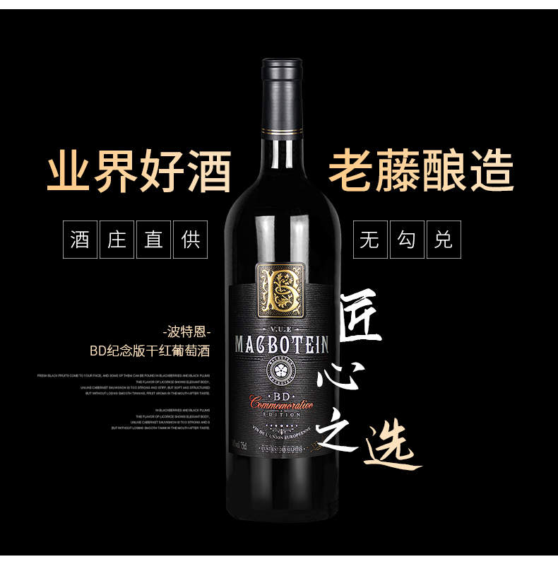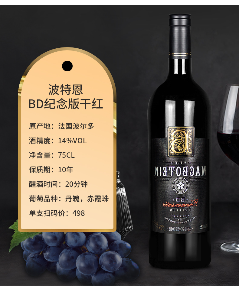 商品名称:法国原瓶进口波特恩BD纪念版干红葡萄酒正品赤霞珠红酒整箱礼盒装